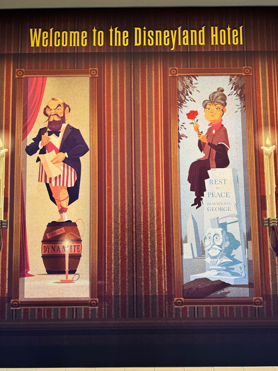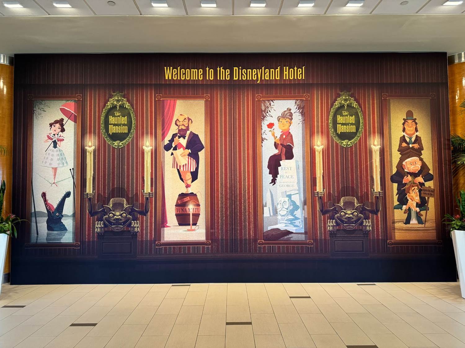As part of the spooky festivities, the stretching portraits from The Haunted Mansion have taken over the lobby to the Disneyland Hotel.