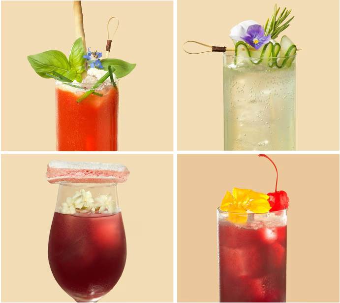 - Spicy Bouquet: Organic raspberry-hibiscus-flavored kombucha, ginger concentrate, cranberry nectar, and egg white (Non-alcoholic Beverage)