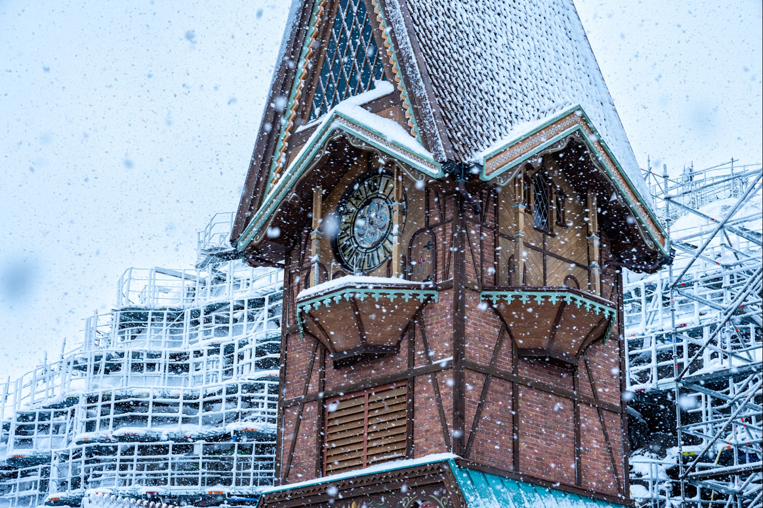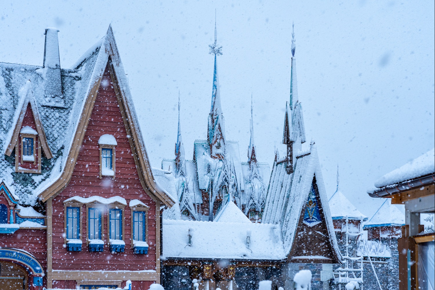 - Plus, the Disneyland Paris X account shared a look at the World of Frozen construction blanketed with snowfall.
