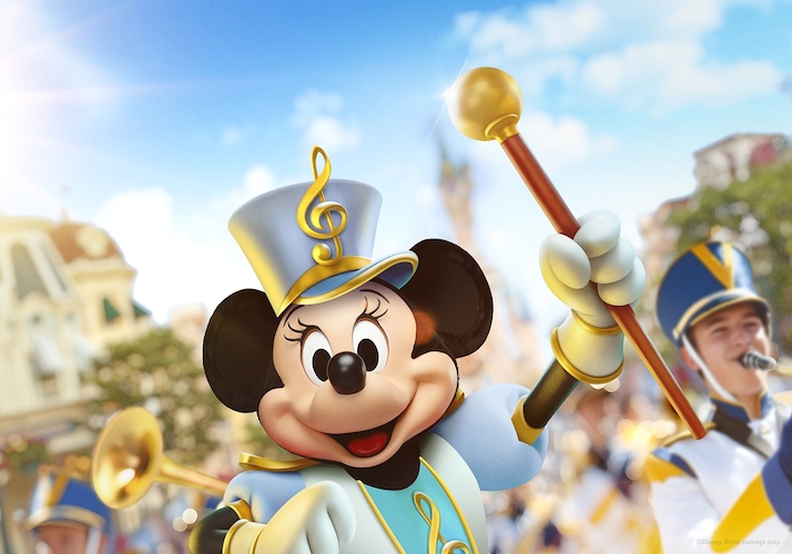 - Main Street U.S.A. will be home to Mickey’s Welcome and Goodnight, Mary Poppins and the Pearly Band, Minnie’s Marching Band, Goofy’s Imaginary Orchestra, and The Grand Orchestra Finale.