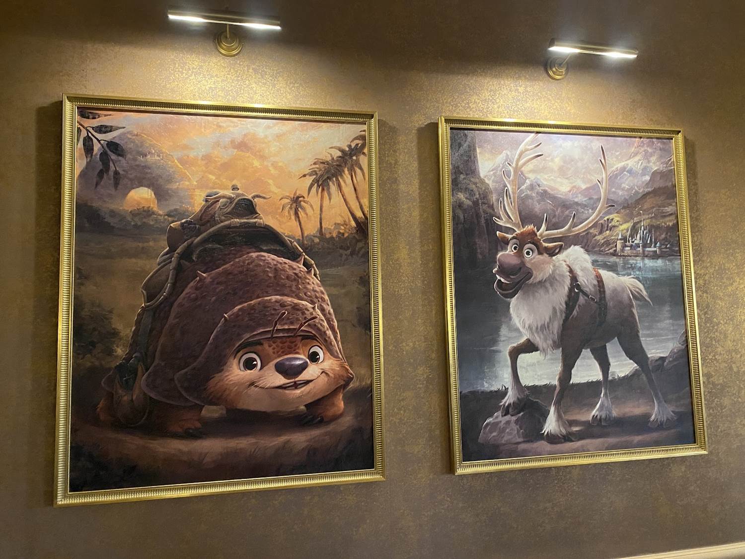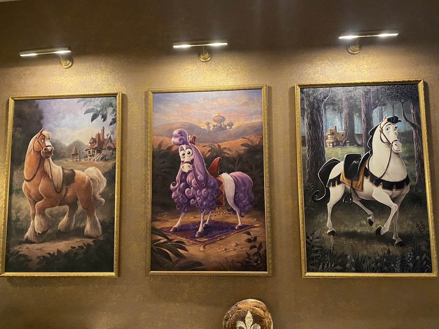 To best serve the culinary experience, Walt Disney Imagineering Paris and Walt Disney Animation Studios worked hand in hand to select and represent a wide array of characters, with each piece of artwork created exclusively for the restaurant.