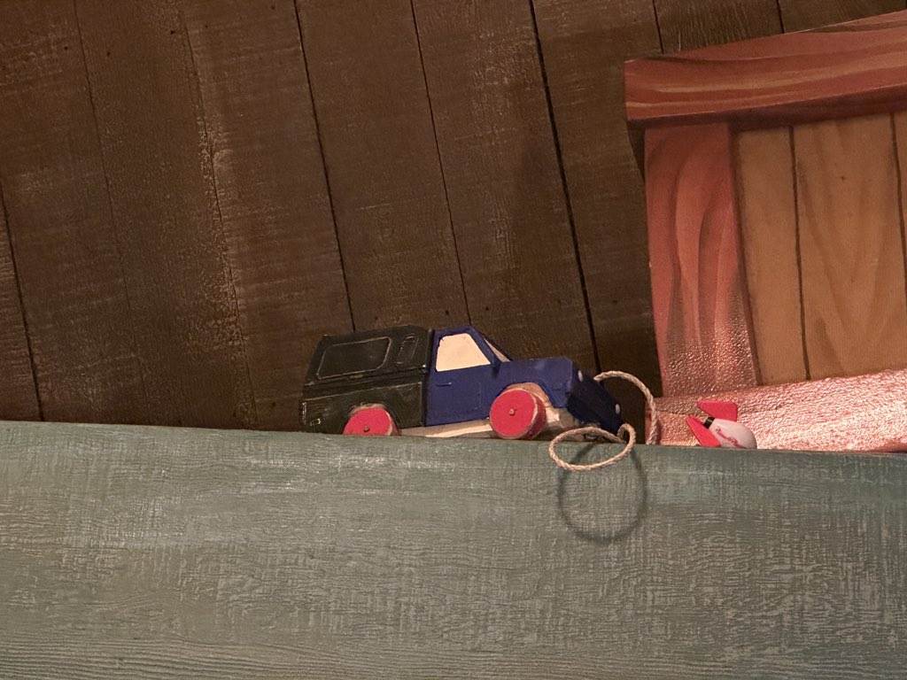 What kind of wood is this Pizza Planet Truck made of? Tiki, tiki, tiki, tiki, tiki, wood.