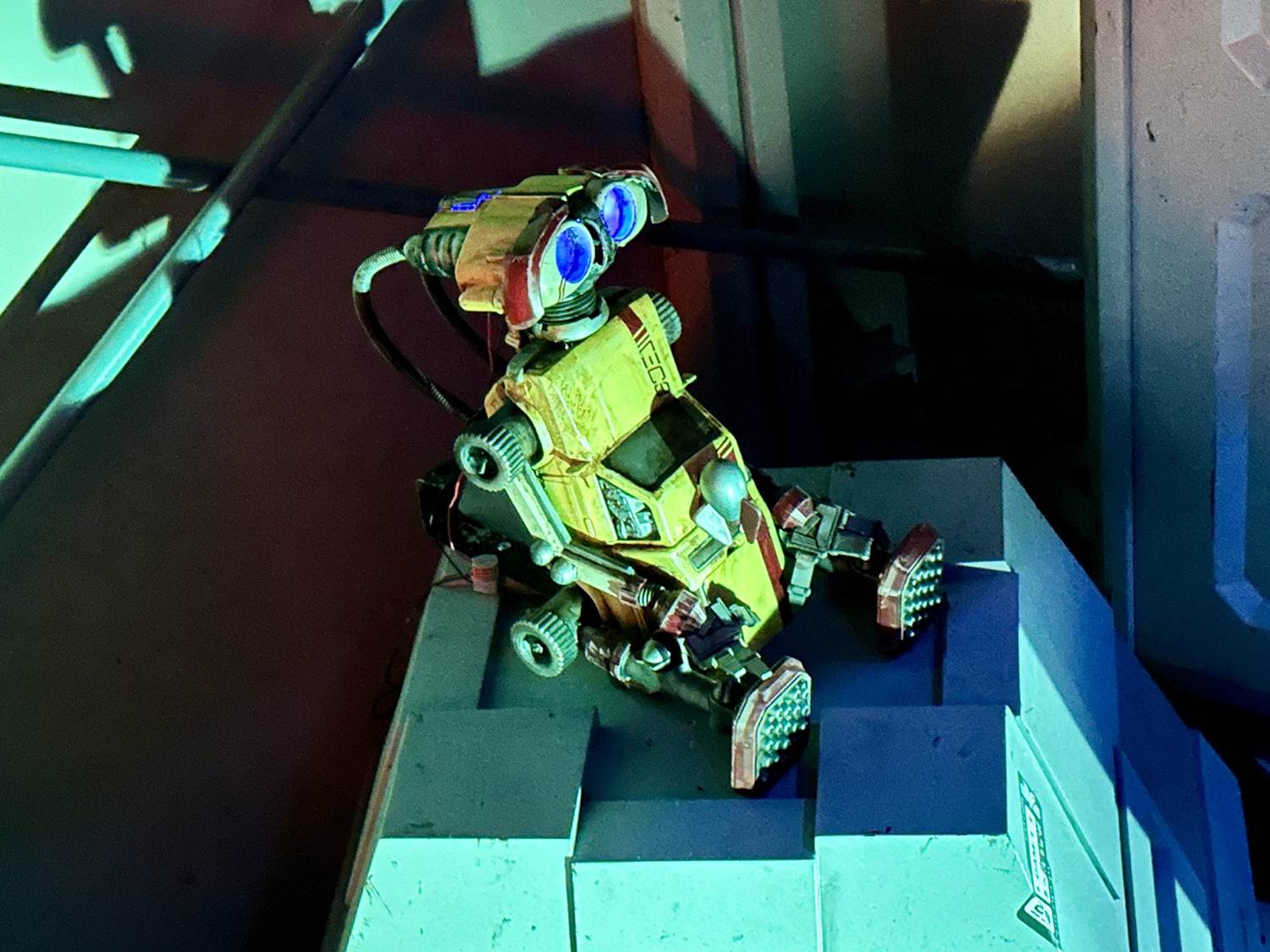 wa-AA-lee! No, wait, that’s a droid built out of… a PIZZA PLANET TRUCK! Pixar and Lucasfilm worlds collide in the queue with this WALL-E-inspired Star Wars droid built from the iconic vehicle.