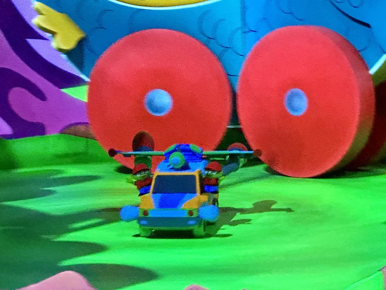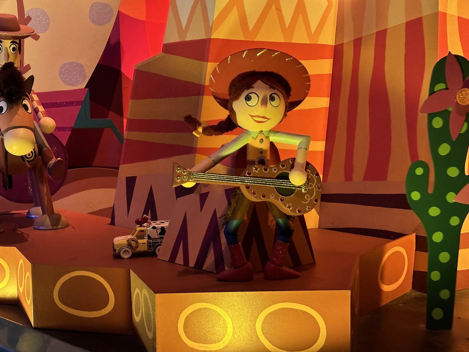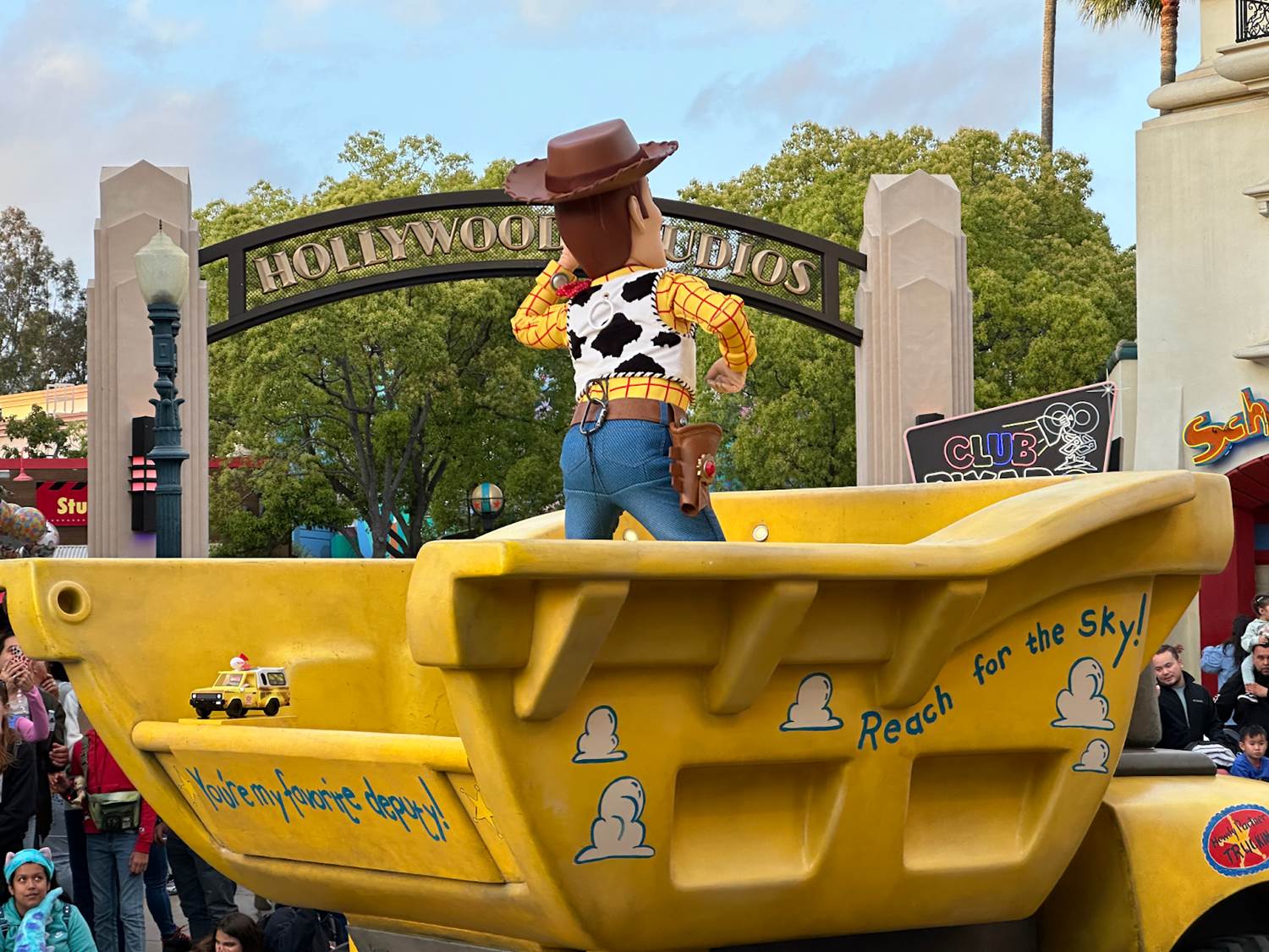 It looks like Woody is searching for Pizza Planet Trucks, too! He might want to try looking down. This one you’ll only find when viewing the Better Together: A Pixar Pals Celebration! parade in the back of Lotso’s Dump Truck float, which Woody is riding in. It’s yellow-on-yellow, so we can’t really blame Woody for missing it.