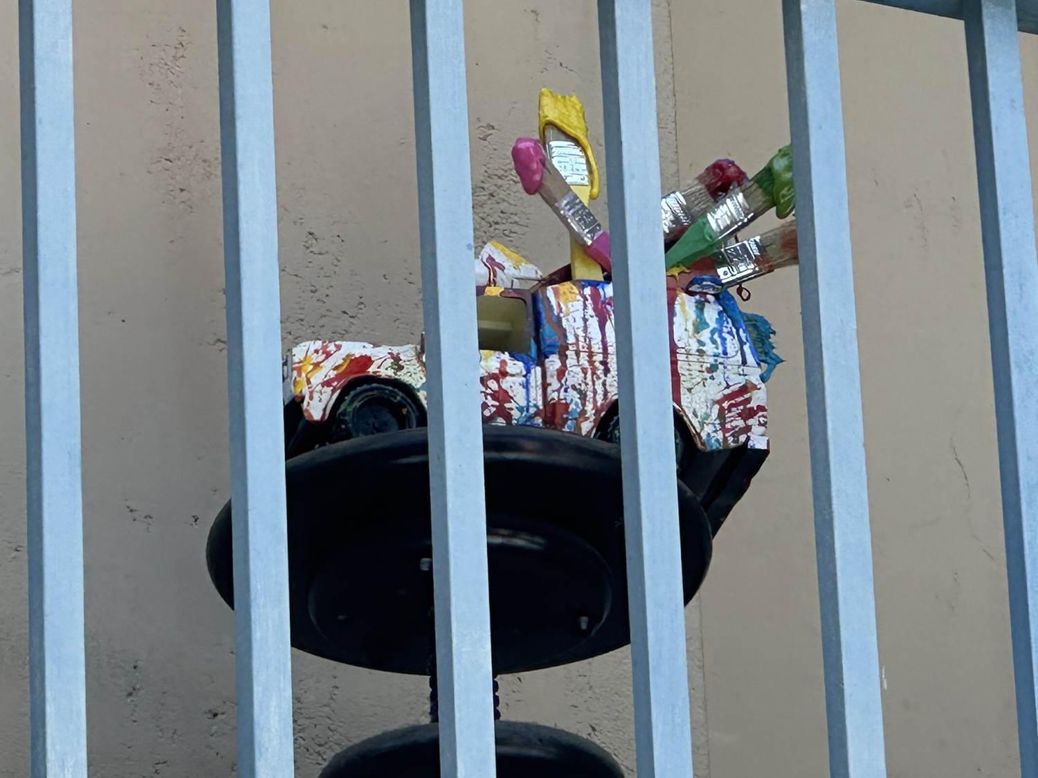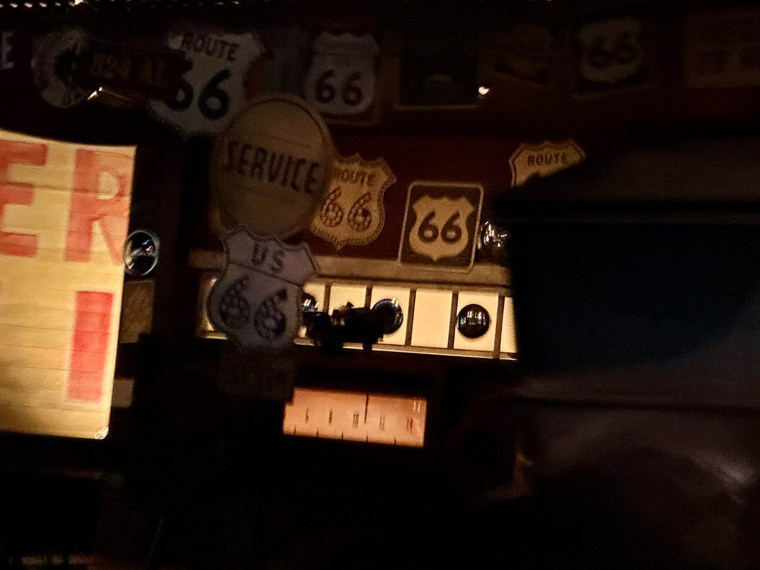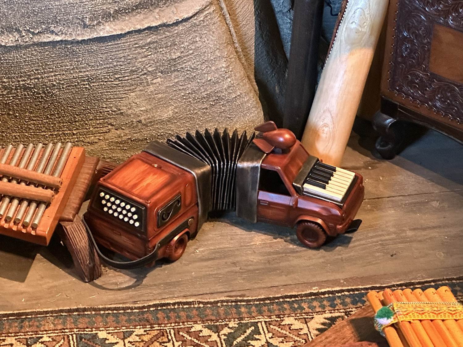 This rusty Pizza Planet Truck is ready to retire. It’s parked outside the giant jukebox made of car parts.