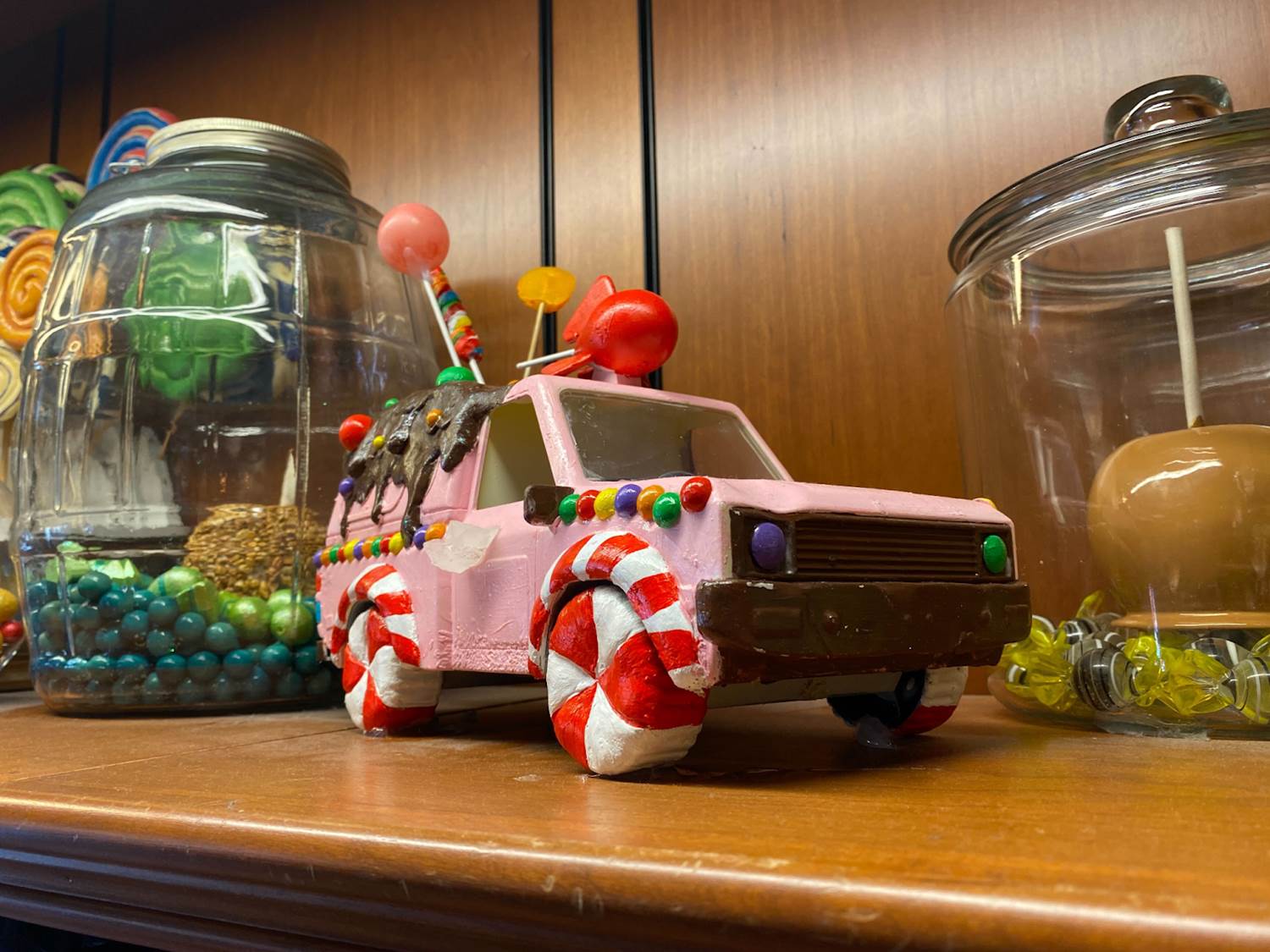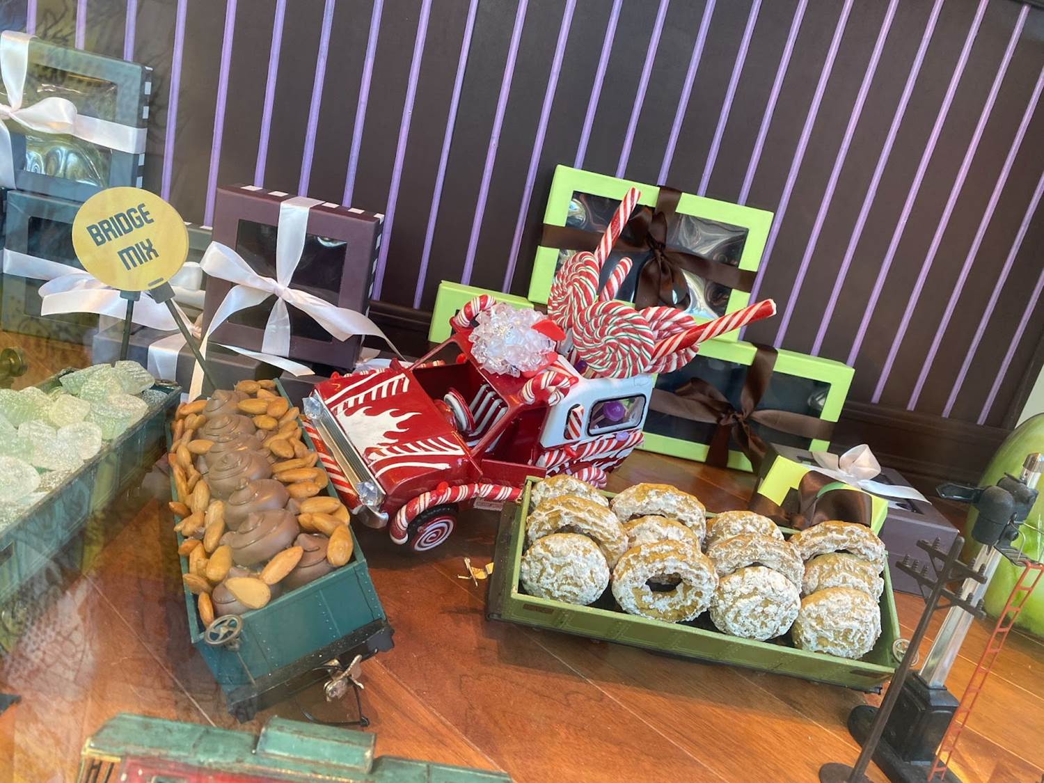 Not enough sugar? A window on Buena Vista St. looking into Trolly Treats contains a candy cane truck from outer space.