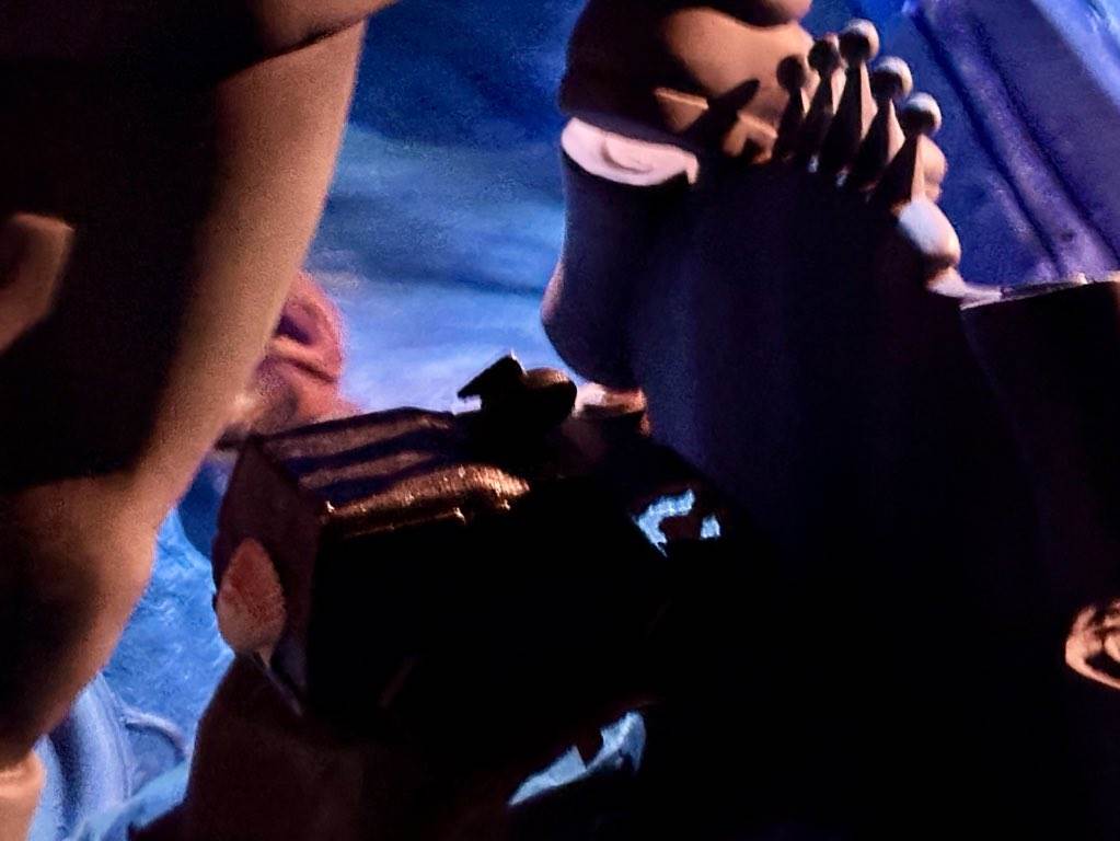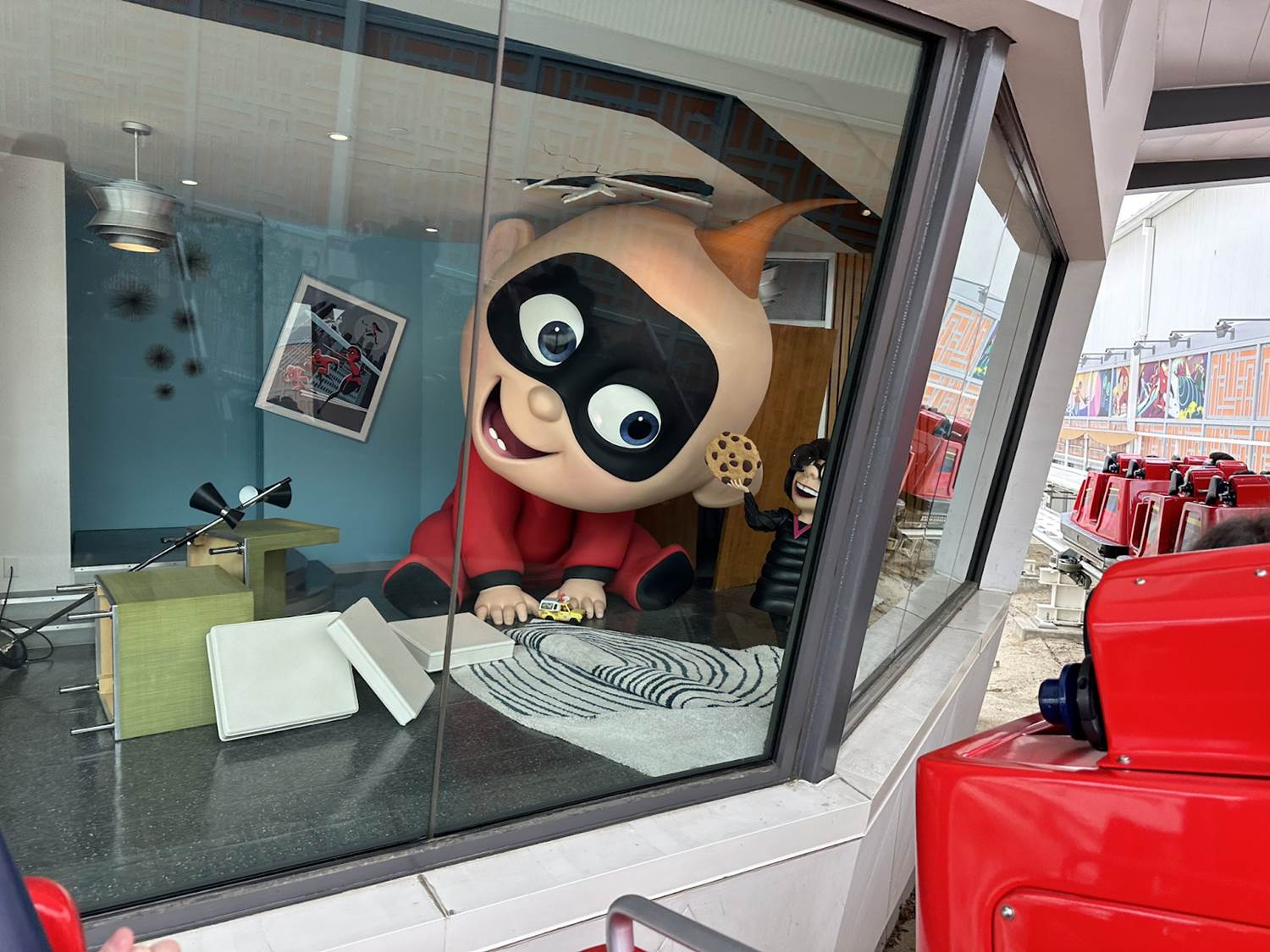 Blink, and you’ll miss this one. As you whiz past one of the final scenes aboard this coaster, notice what’s between giant Jack Jack’s hands.