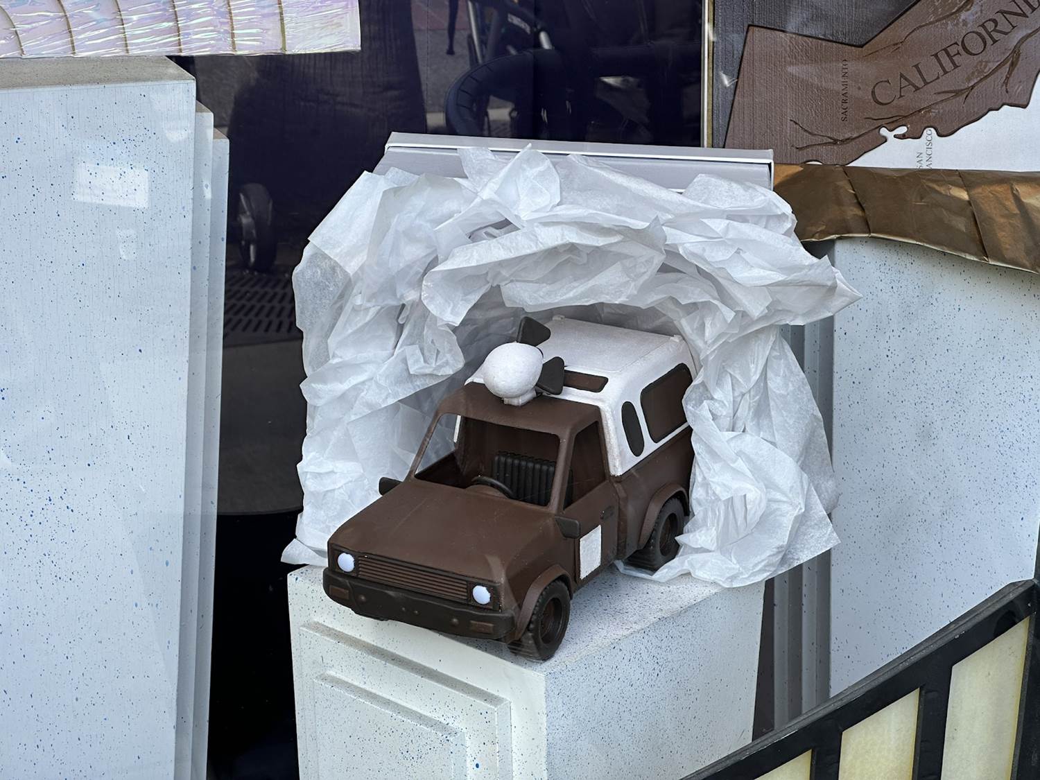 While doing some window shopping in Hollywoodland, you might consider this decadent chocolate Pizza Planet Truck as a gift for a loved one.