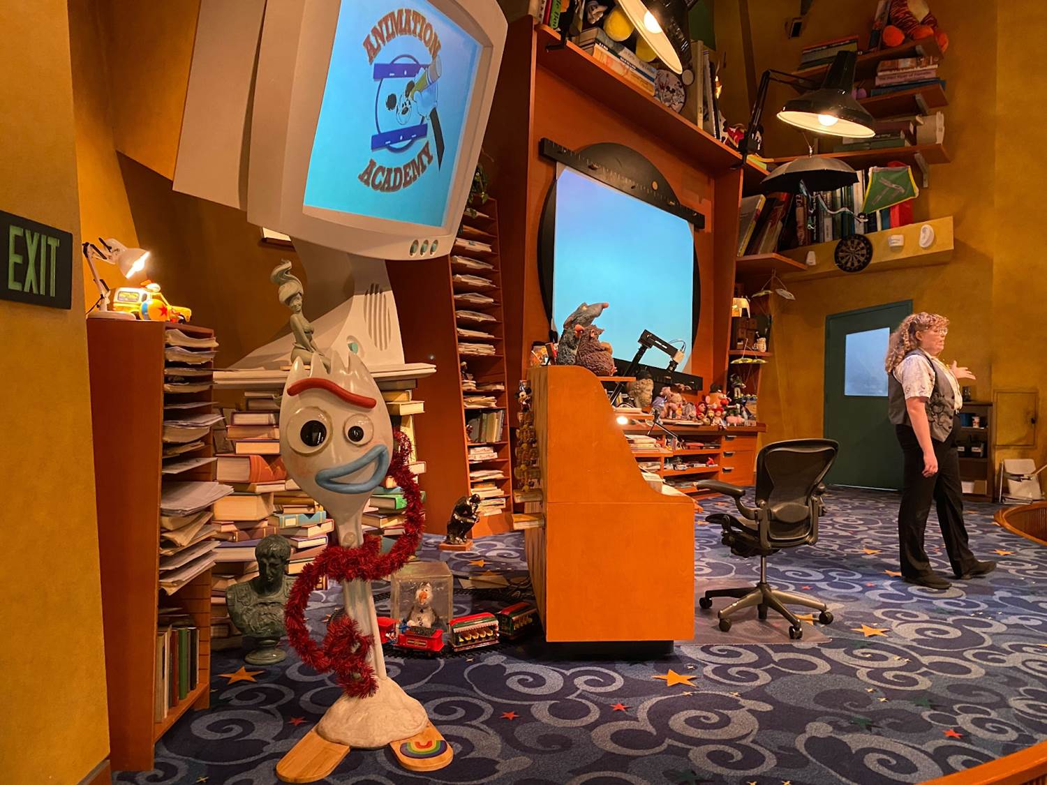 You can always learn how to draw your favorite animated characters at the Animation Academy. But only during Pixar Fest can you find hidden Pizza Planet Trucks. Hi, Forky! Oh, look, that shelf has a Pixar ball and a Luxo lamp and a… PIZZA PLANET TRUCK!