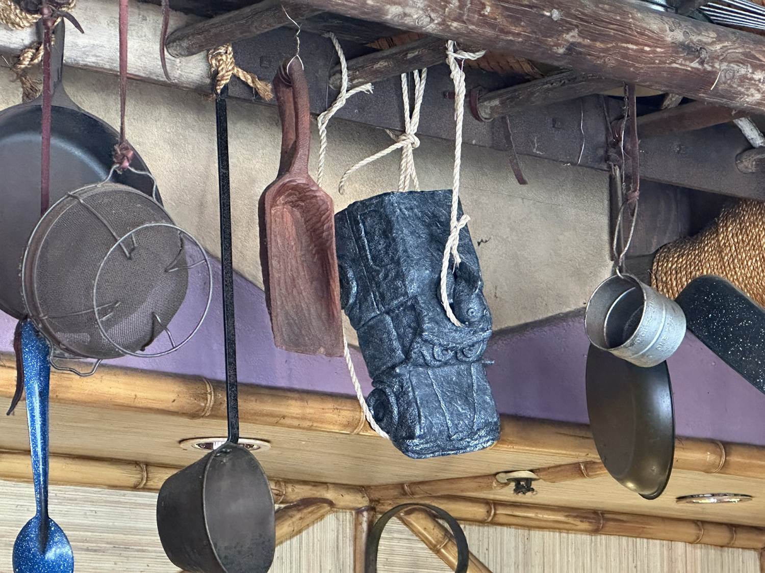 This famous Adventureland eatery has so many types of cooking utensils. Strainers, pans, ladles, pots, and… Pizza Planet Truck.