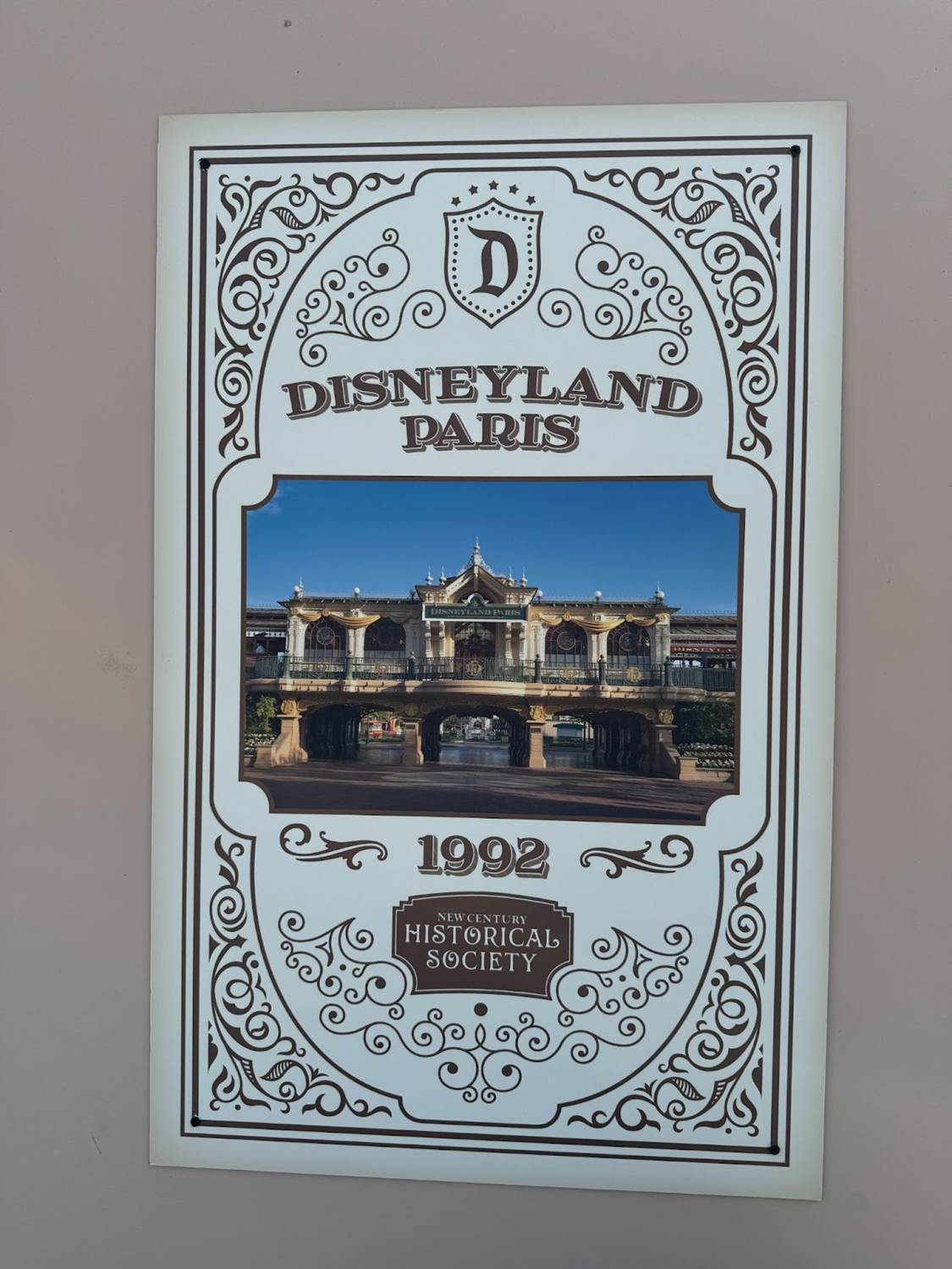 At the front of the park, the “New Century Historical Society" shares a look at the train station from the other parks around the globe.