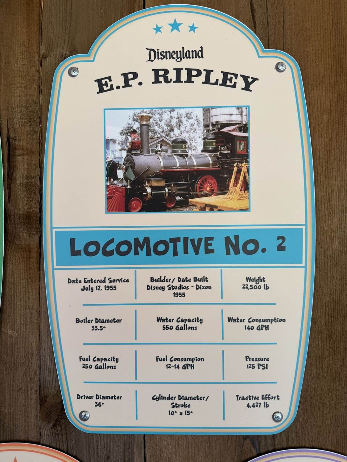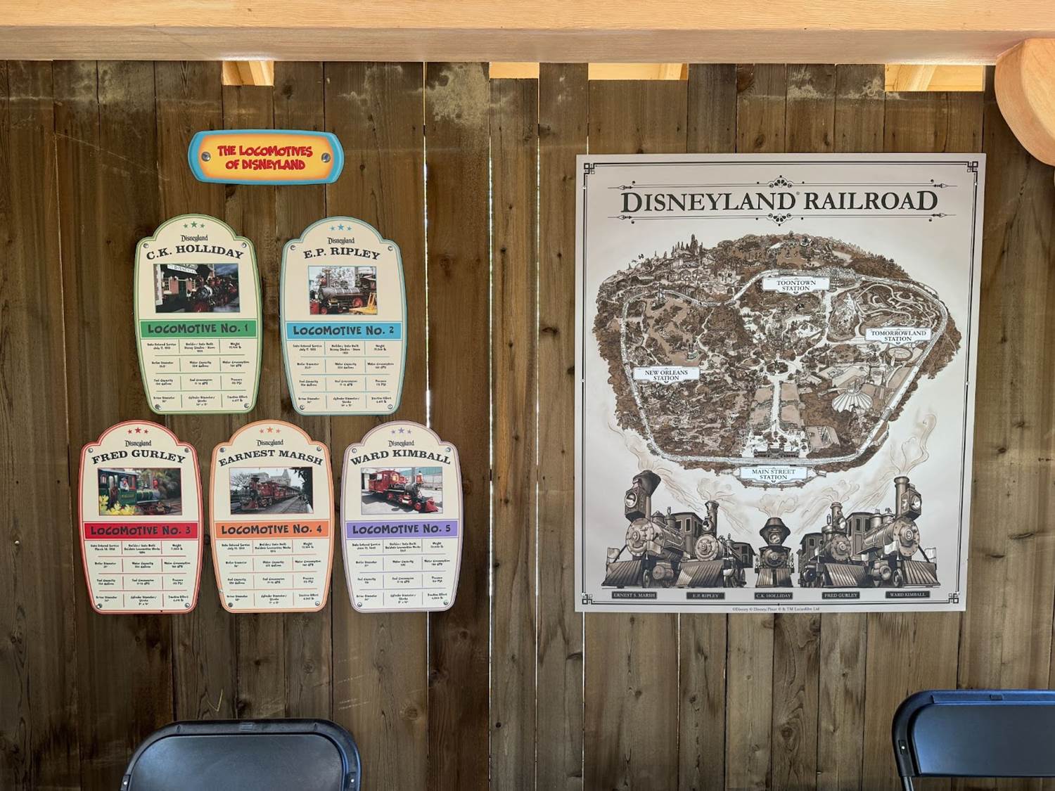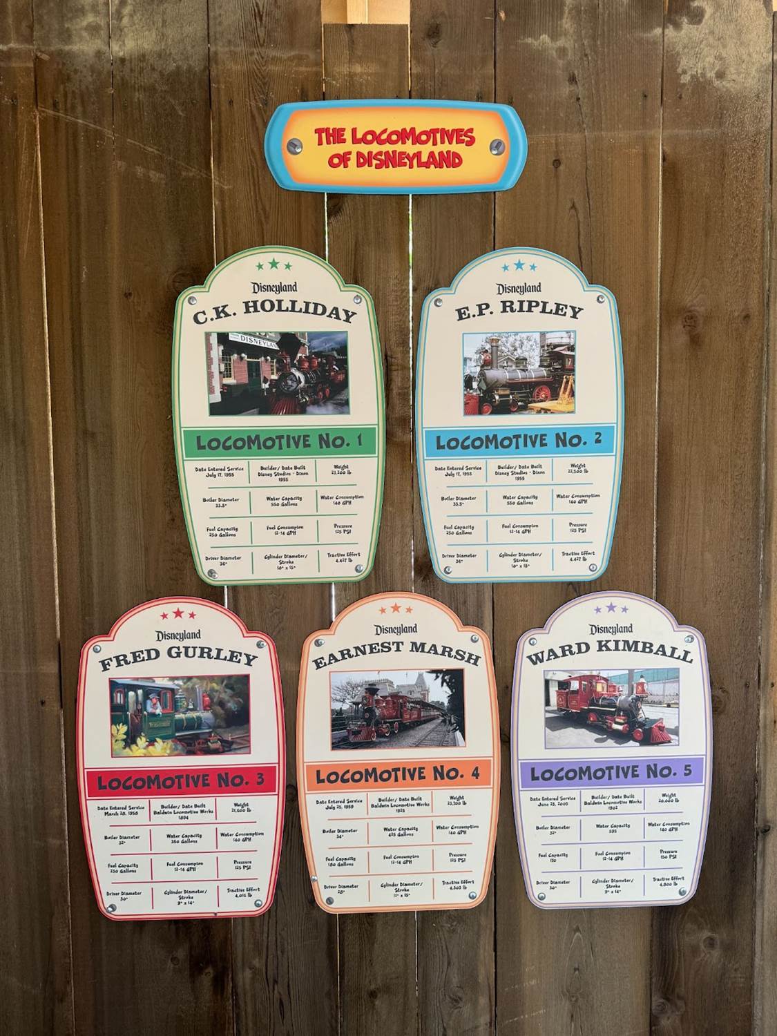 Each individual locomotive of the Disneyland Railroad has its own moment in the spotlight, highlighting the stats of each.