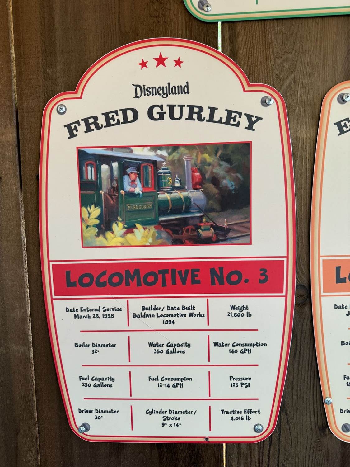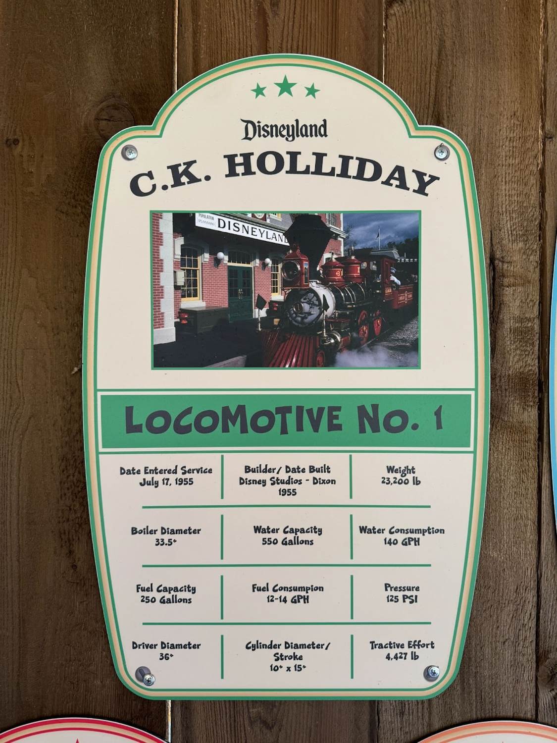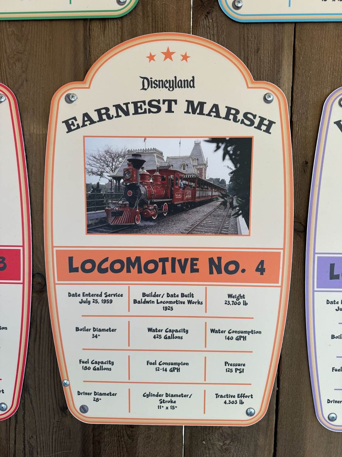 Each individual locomotive of the Disneyland Railroad has its own moment in the spotlight, highlighting the stats of each.
