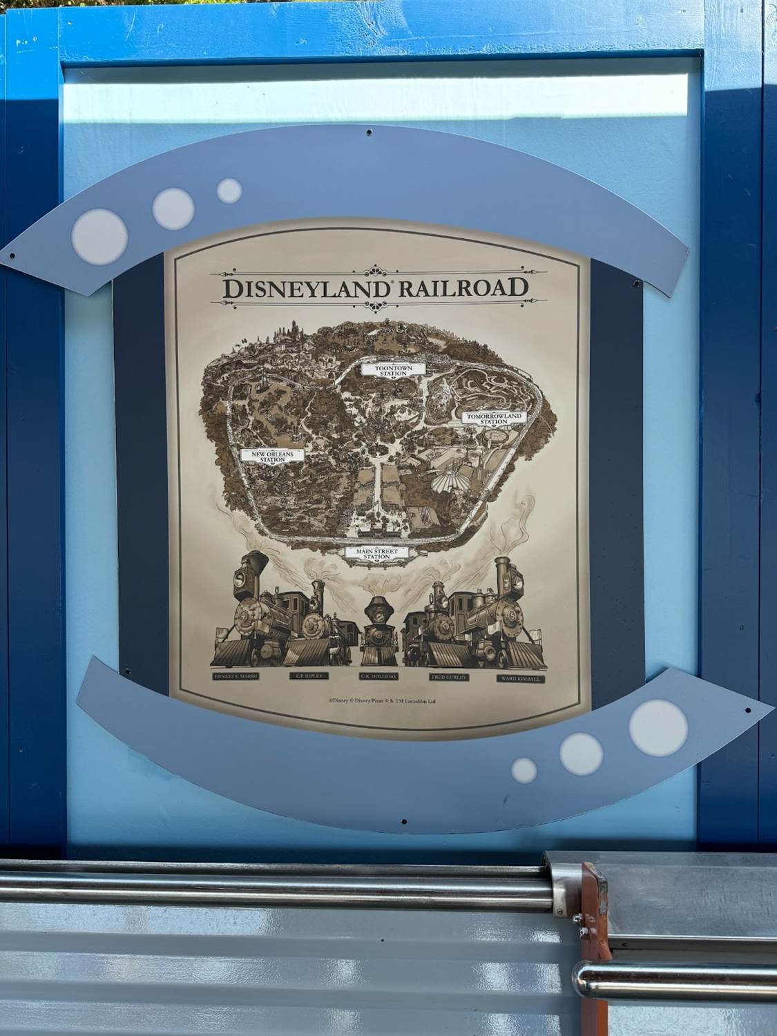 Over in Toontown, the history of the Disneyland Railroad is on full display, with historical photos featuring Walt’s love of locomotives.