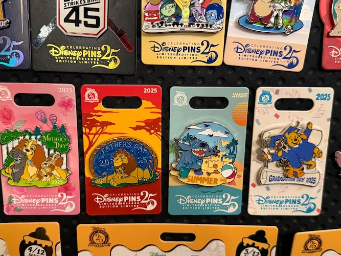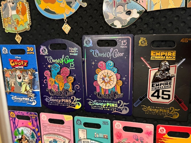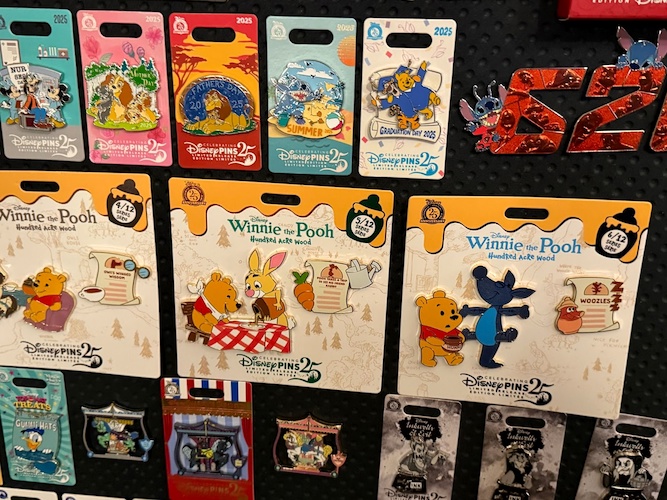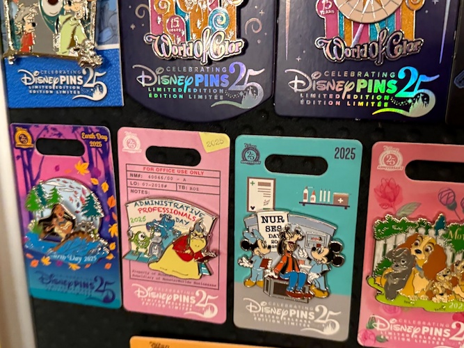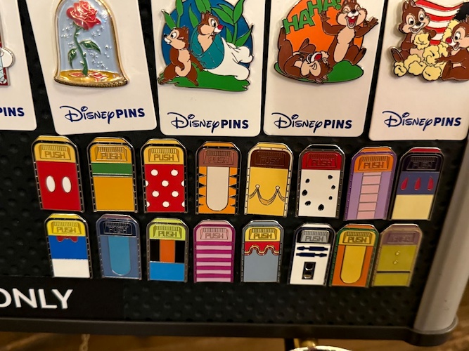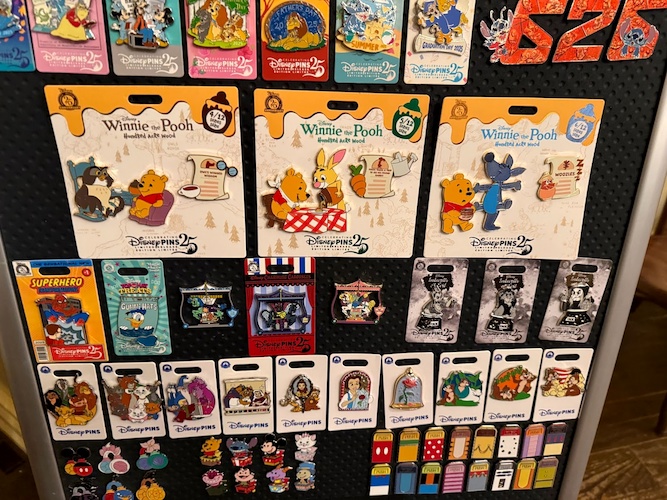 Absolutely covered in new pins, dozens of the tradable Disney Parks collectibles could be seen on the pin board at the Frontierland restaurant. Minus the jumbo pin on the far right, guests got an early opportunity to purchase the pins at the top of the board before anyone else. Check out the other previewed pins.