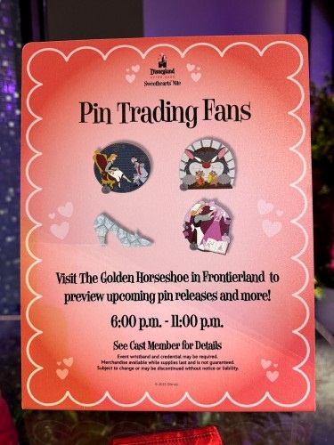 At this year’s Disneyland After Dark: Sweethearts’ Nite event, guests visiting the separately ticketed event were able to get a sneak peek at upcoming pin releases at the resort.