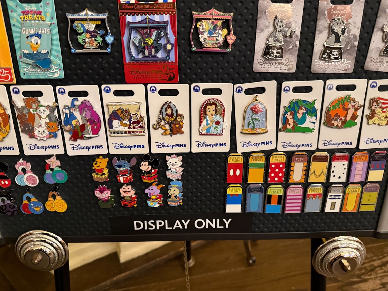 Absolutely covered in new pins, dozens of the tradable Disney Parks collectibles could be seen on the pin board at the Frontierland restaurant. Minus the jumbo pin on the far right, guests got an early opportunity to purchase the pins at the top of the board before anyone else. Check out the other previewed pins.