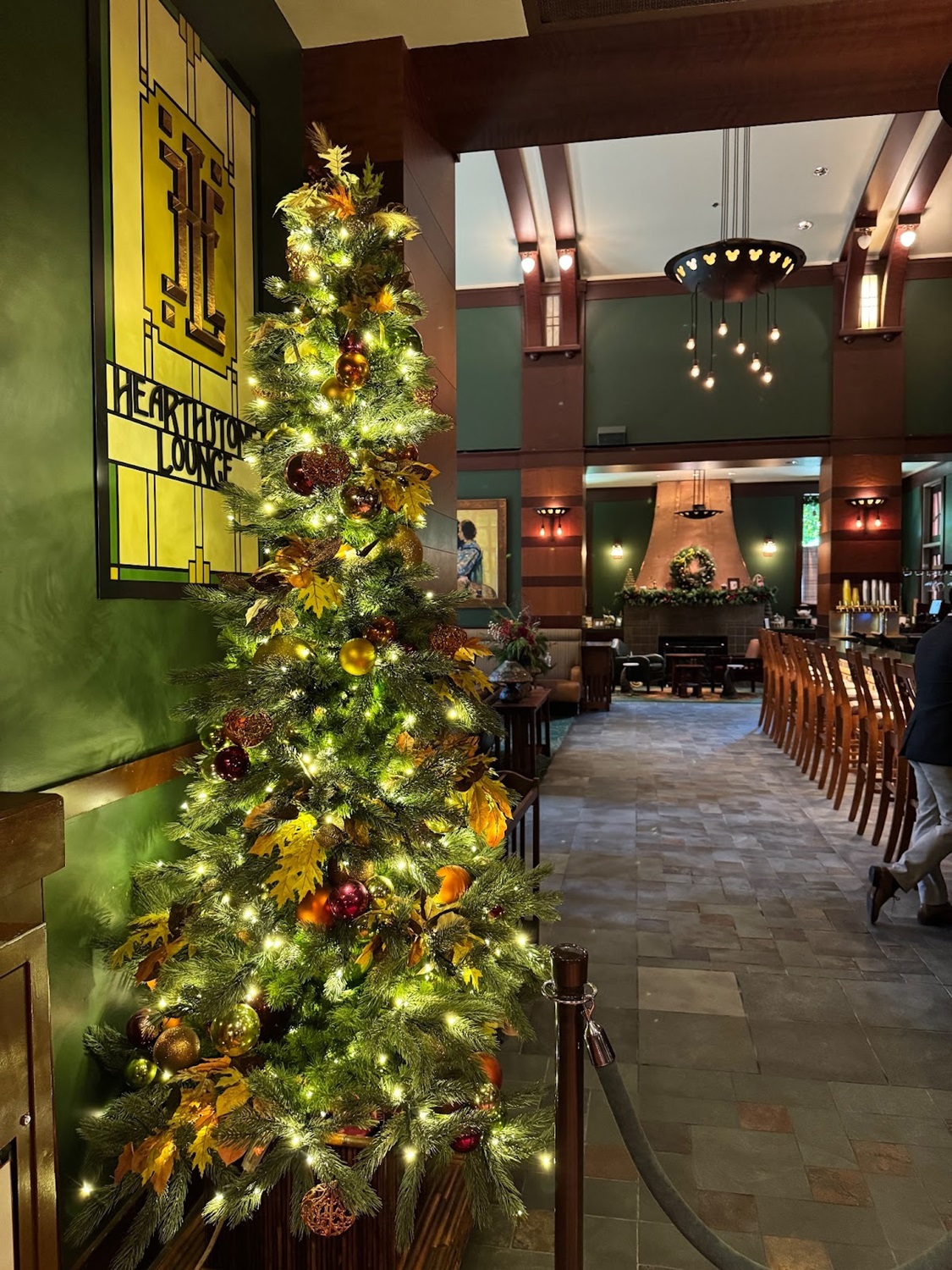 The hotel’s Christmas tree can be found right in the middle of the lobby, stretching high up towards the ceiling.