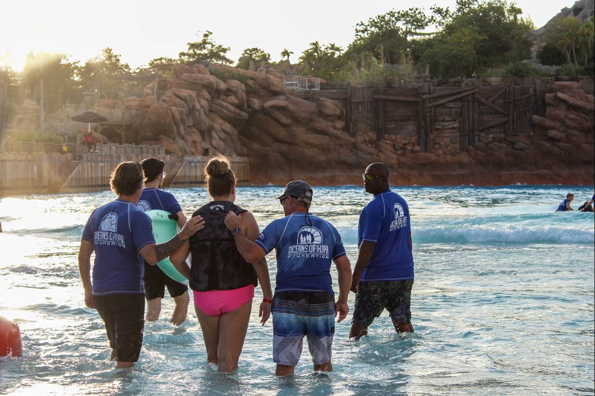 - Nearly 30 Disney VoluntEARS and Oceans of Hope volunteers teamed up to offer an exclusive adaptive surfing lesson at Typhoon Lagoon for cast members, their friends and families.