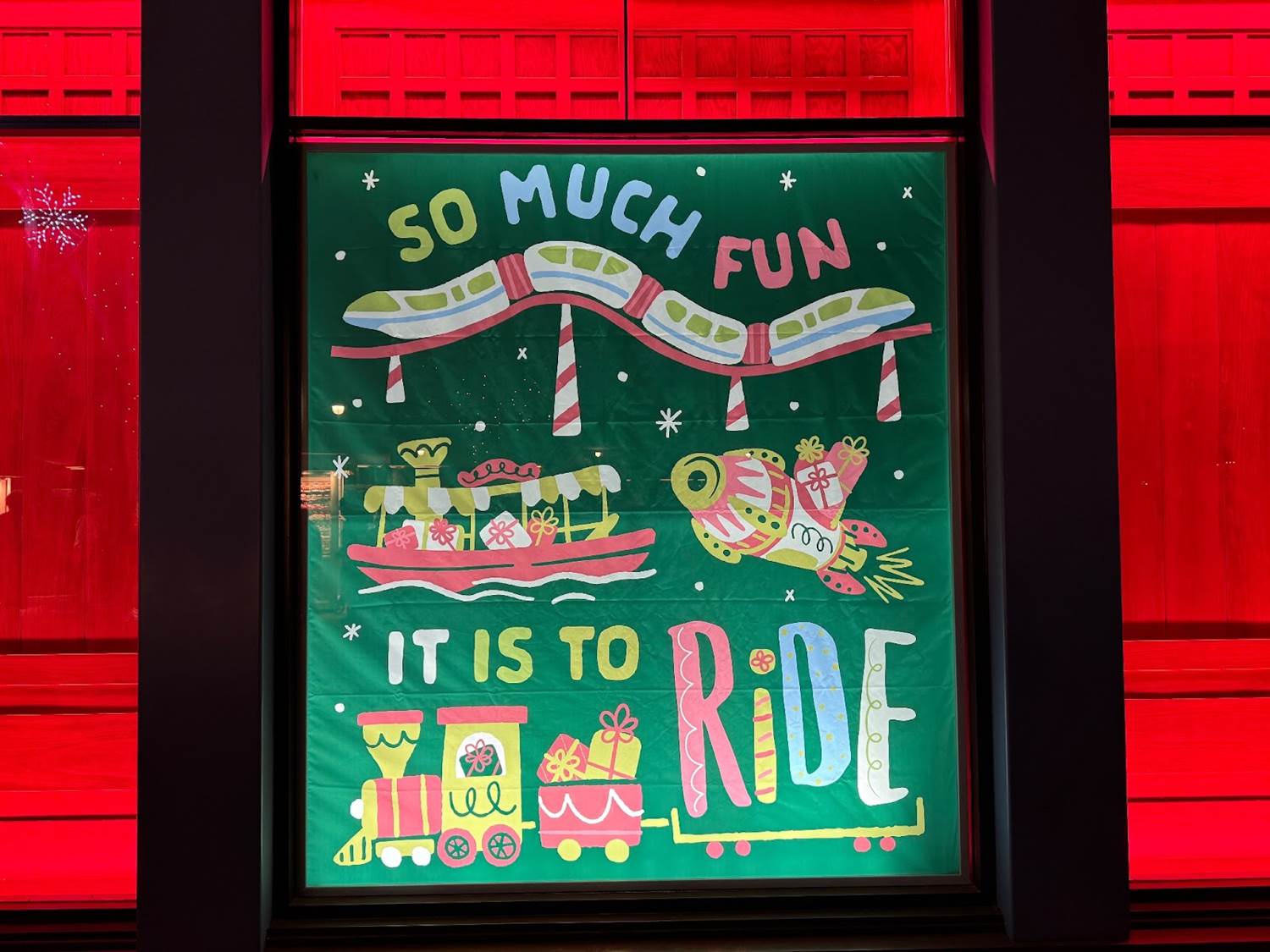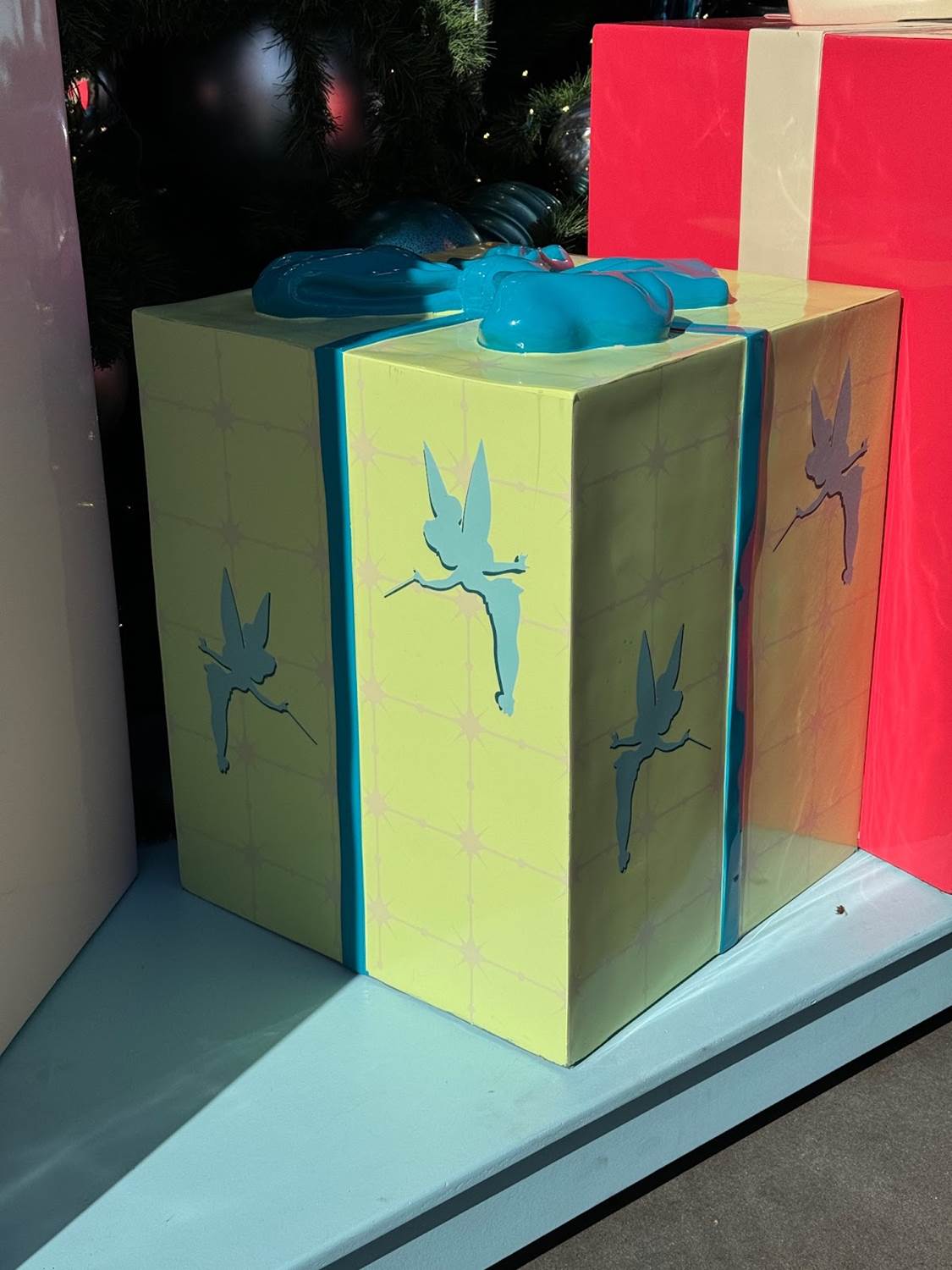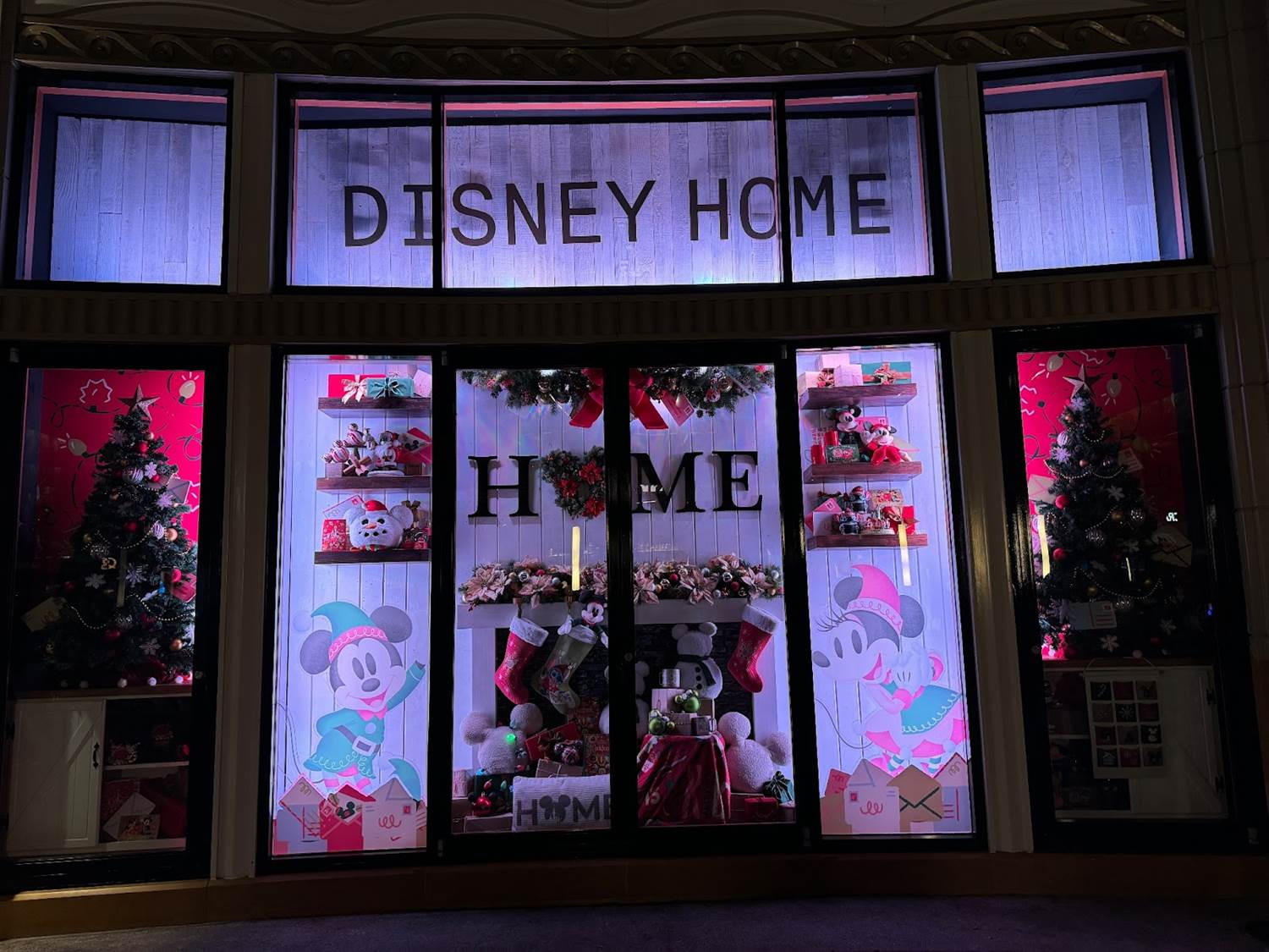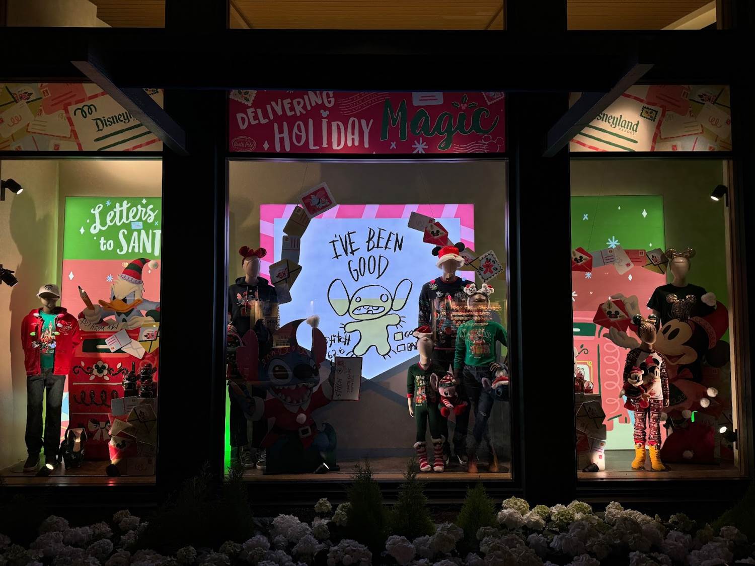 The shop windows of the World of Disney store are celebrating Disneyland’s transformation into “The Merriest Place on Earth."