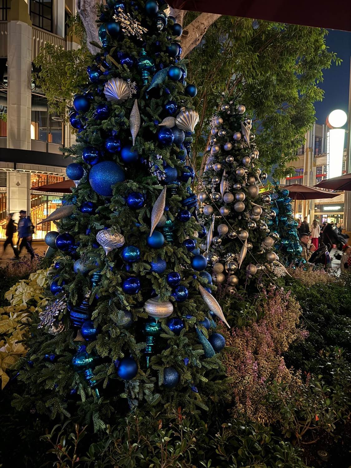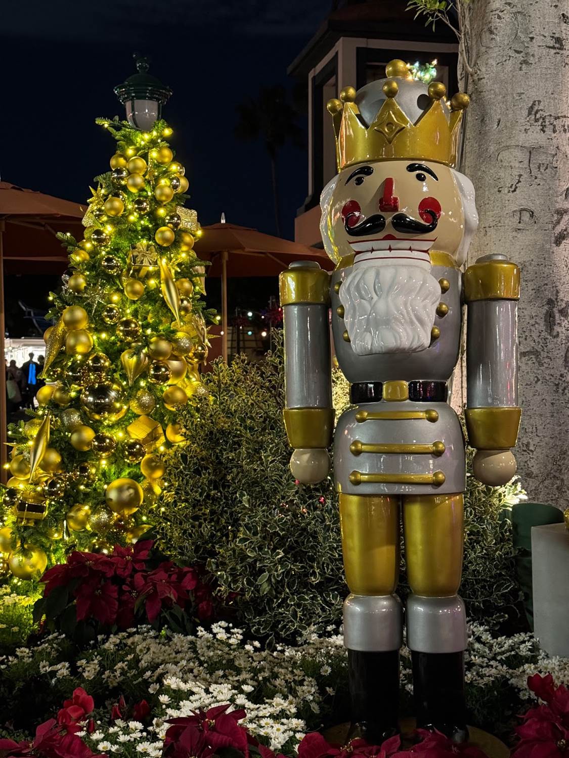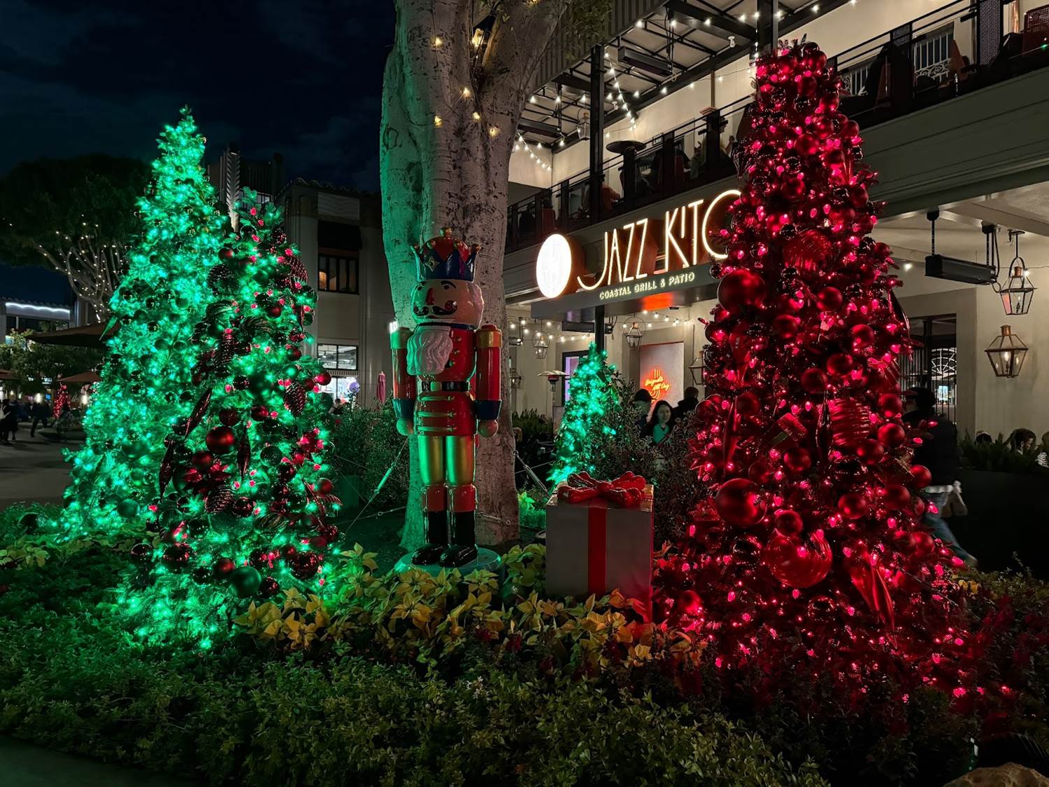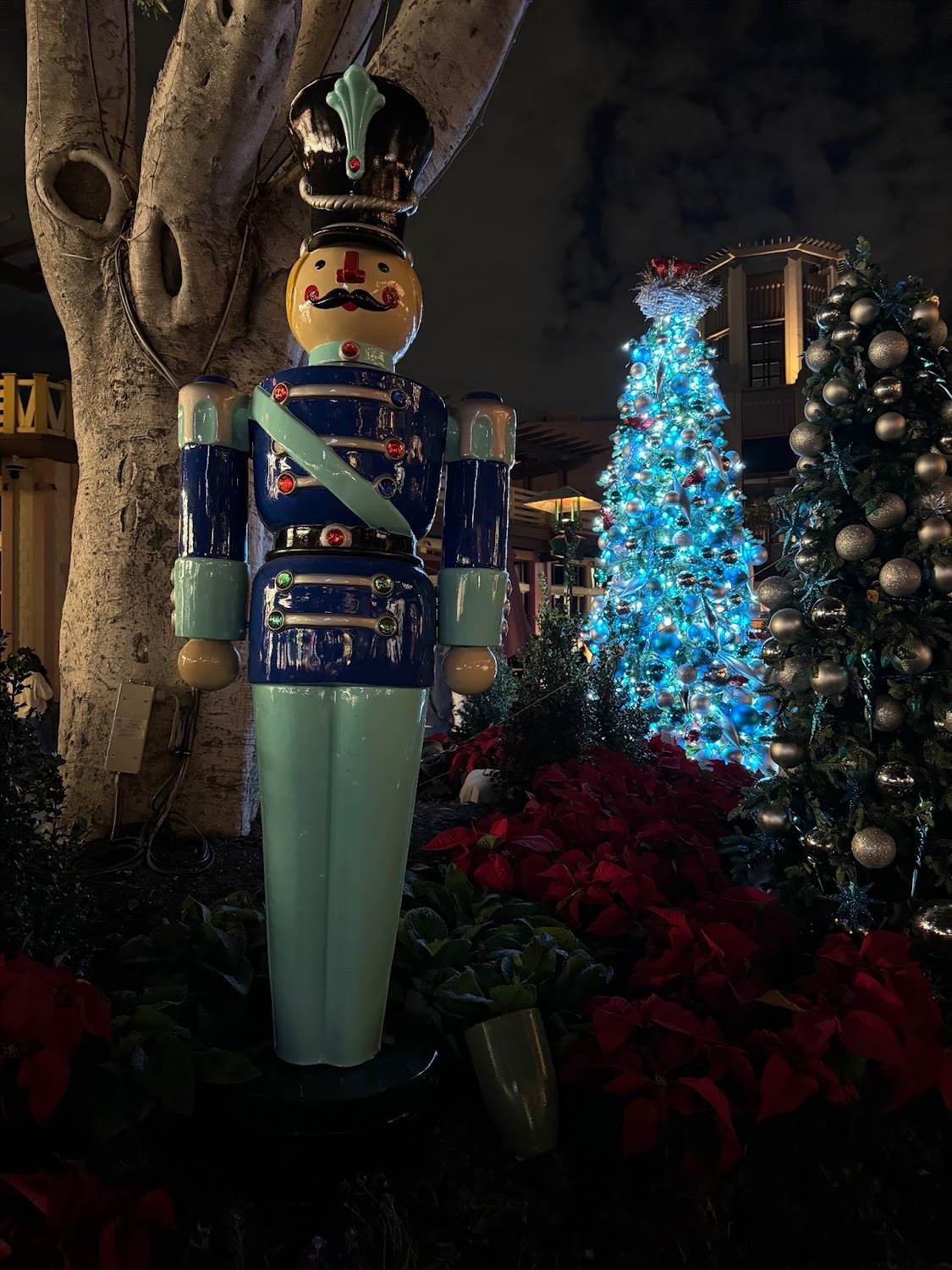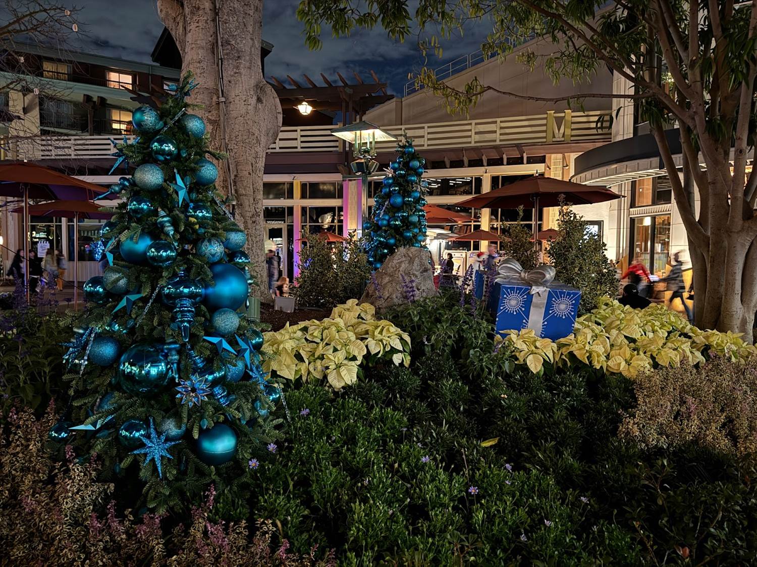 Various Christmas trees and icons, such as Nutcrackers, can be found in the planters throughout Downtown Disney.