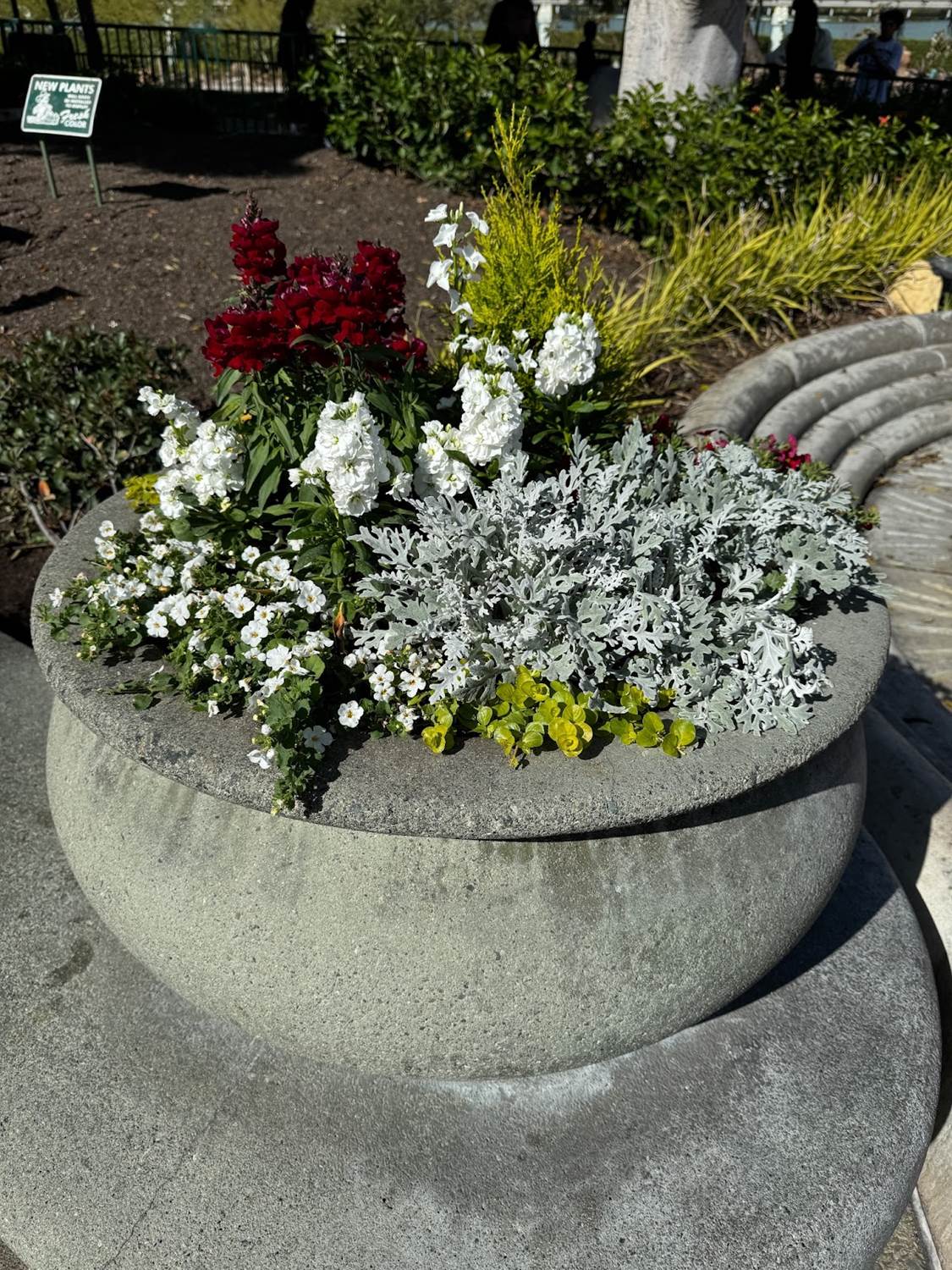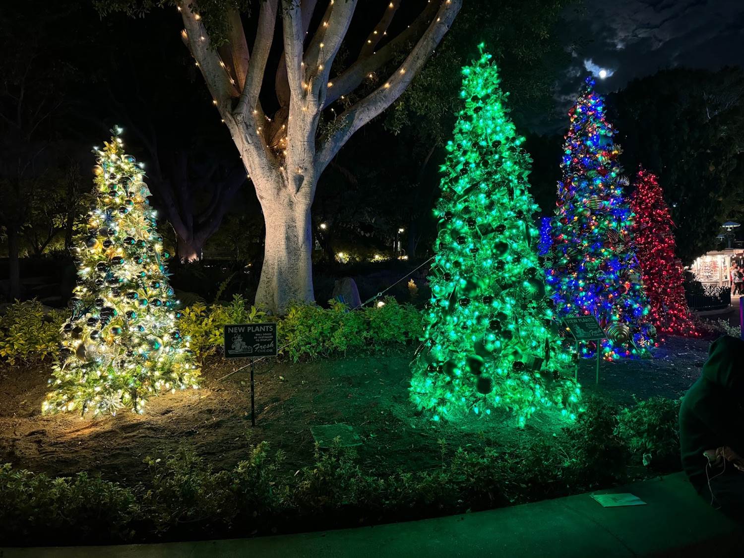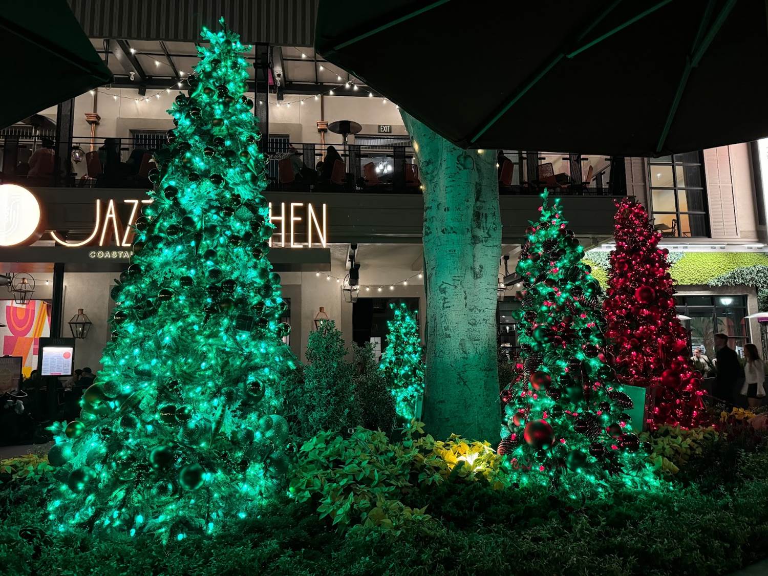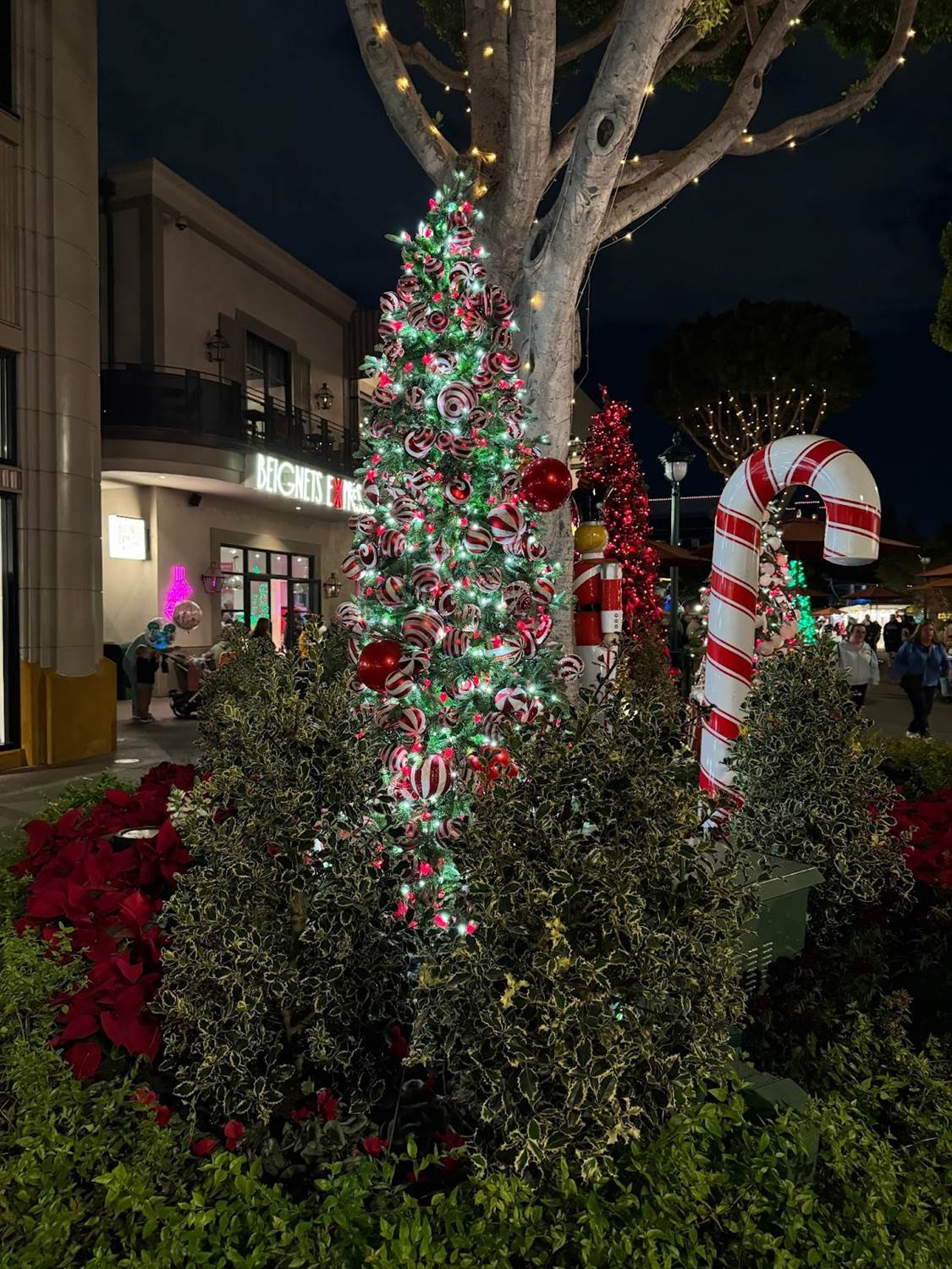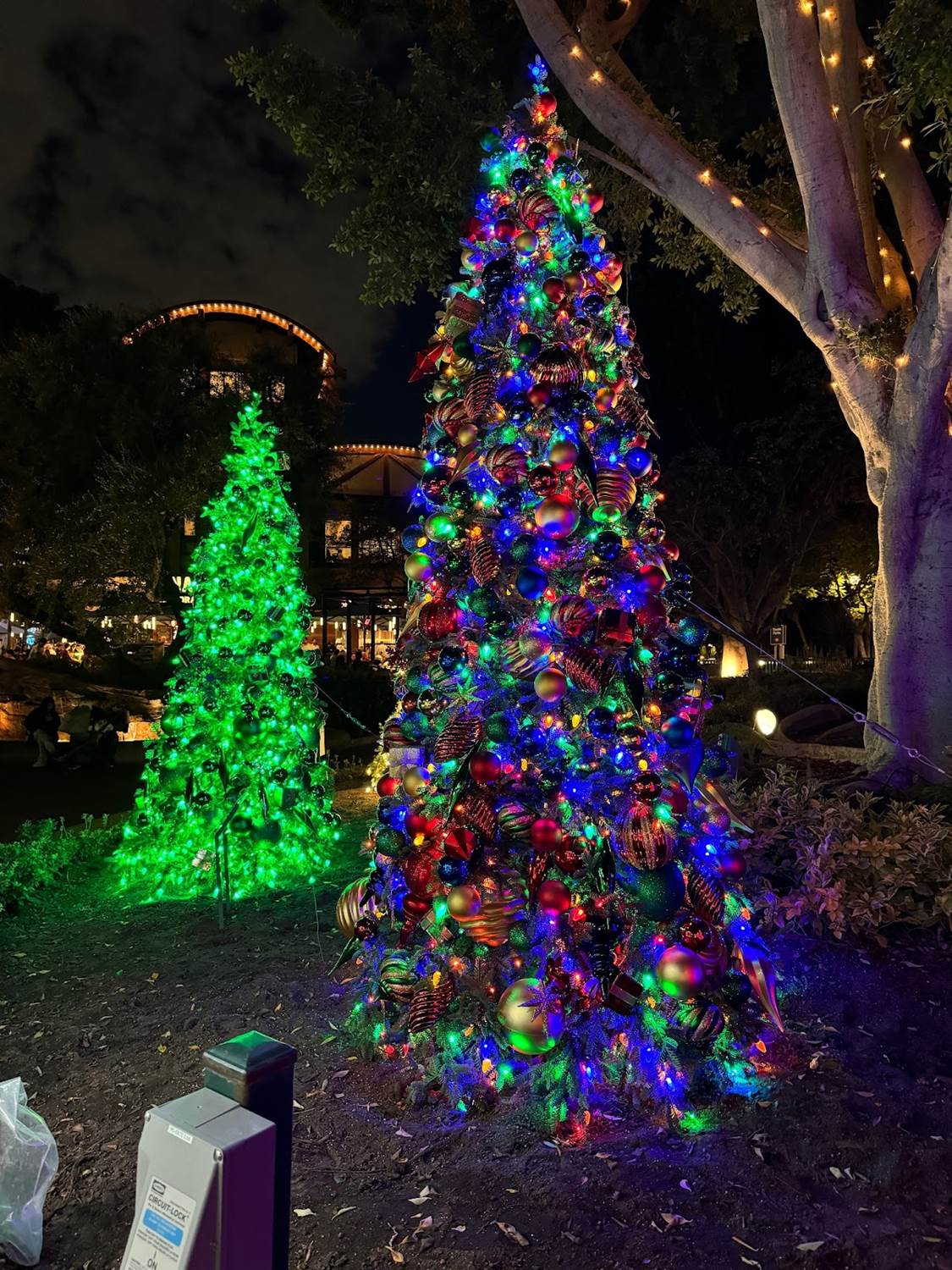 Various Christmas trees and icons, such as Nutcrackers, can be found in the planters throughout Downtown Disney.
