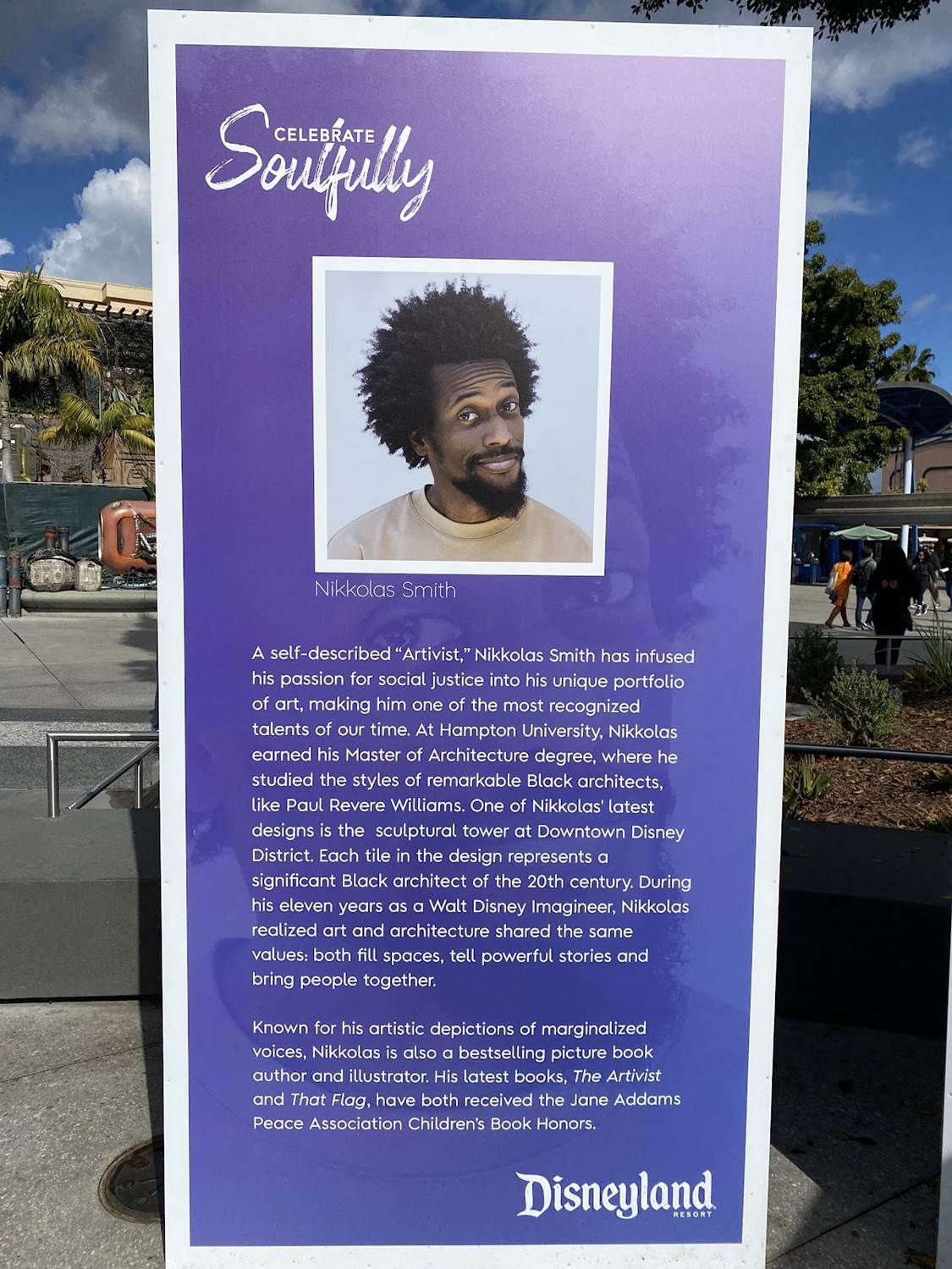 - Black Stories Forever in Bloom: A Celebration of “Artivist" Nikkolas Smith—Crafts and Historical Panels Amplifying His Brilliance, where guests can experience the reimagining of the Downtown Disney District, including artist Nikkolas Smith’s homage to significant Black architects of the 20th century.