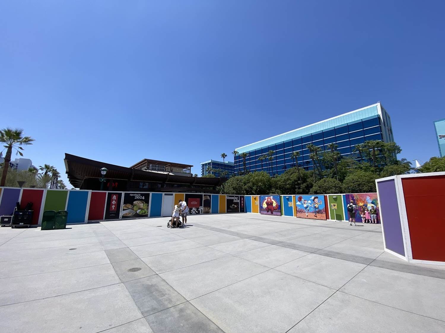 Along the walls, new Pixar murals have been added to brighten up the drabness of construction.