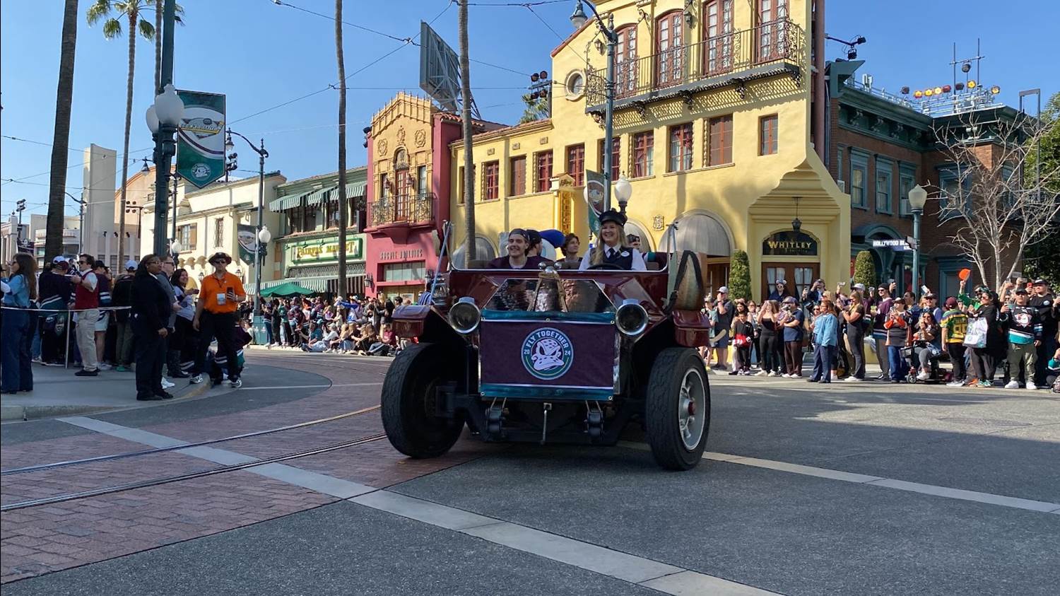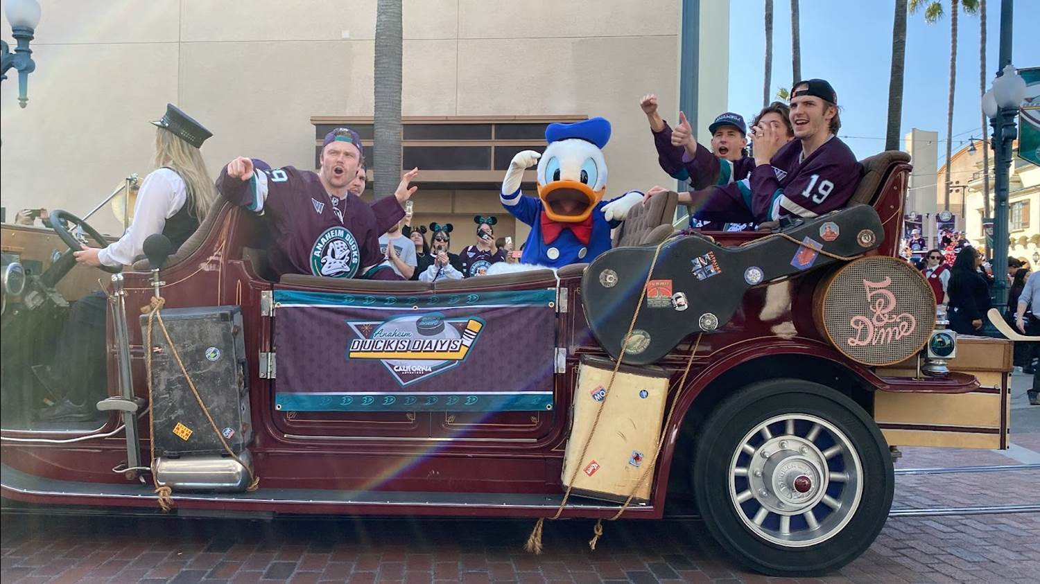 - Guests could pick their spot along the path between Hollywood Land and Paradise Gardens Park to see some current Anaheim Ducks players in this cavalcade to celebrate the special occasion.