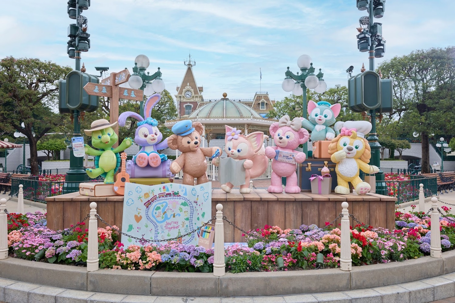 - Begin your enchanting journey at Main Street Station, featuring vibrant springtime decor. Enjoy a travel-themed photo opportunity and a special map illustrated by Duffy and friends, inviting you to explore the park's many wonders.