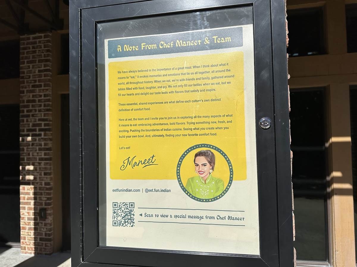 Opening soon at Disney Springs, Chef Maneet Chauhan’s Eet has unveiled signage and a menu at its new location.