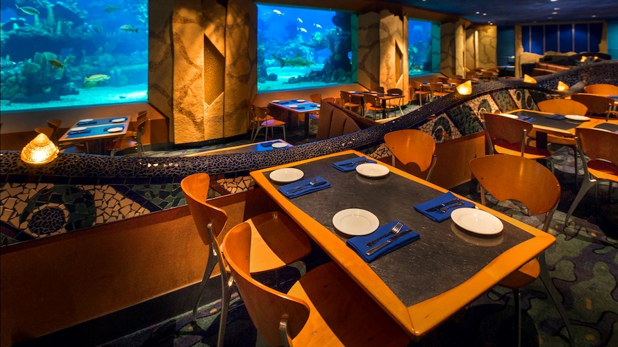 While the sea life are the undisputed stars of the show, the food is a little less standout. The menu consists mainly of seafood items, with a few exceptions, cooked to a satisfying degree of sophistication. Plenty of signature drinks and a few fun desserts round out the menu.