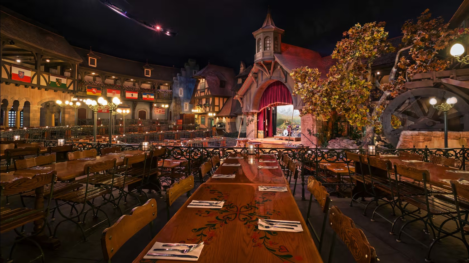 EPCOT’s World Showcase is known for its cultural immersion, and Germany does it exceptionally well. Biergarten Restaurant - tucked all the way at the back of the pavilion - celebrates Oktoberfest all year long with authentic German cuisine and lively entertainment. Another one of Disney’s meticulously-themed “indoor-outdoor" spaces, Biergarten makes you feel like you are in a folksy German courtyard - complete with a fully-functioning water wheel. A semicircle of long beer hall-style tables surround a round stage, where you’ll hear the oompah beat of a live polka band. In fact, singing and dancing along is encouraged.