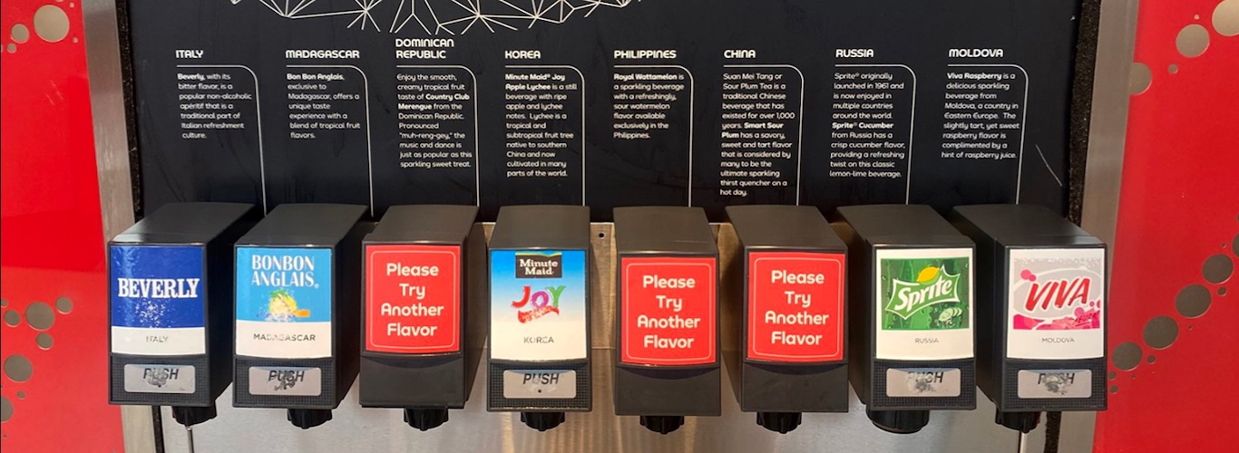 - Country Club Merengue from the Dominican Republic, Royal Wattamelon from the Philippines, and Smart Sour Plum from China are all not available on any of the fountains within the location.