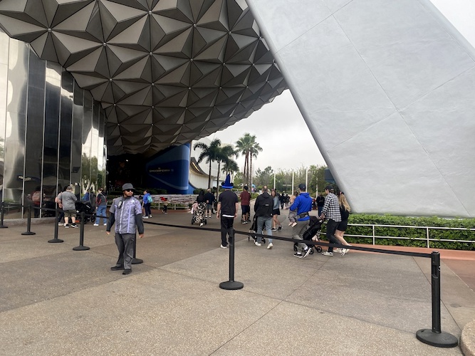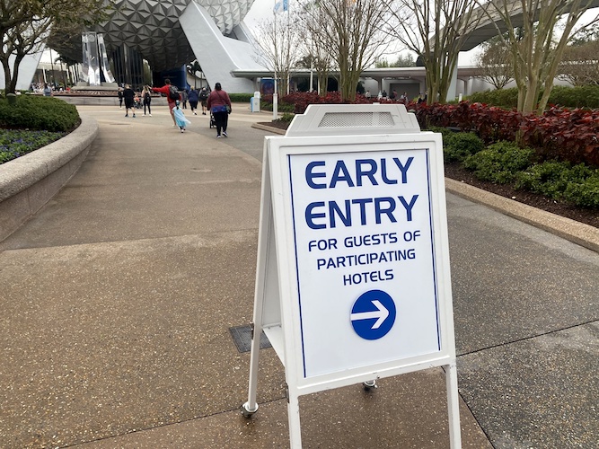 - As guests pour into the park prior to opening, hotel guests with the perk are now required to enter into the park on the right side of Spaceship Earth towards World Nature with regular day guests waiting for park opening on the left.