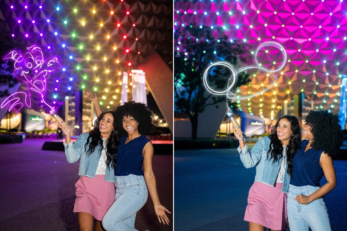 - Light Painting: Paint with all the colors of this Magic Shot! Available near the planter across from the popcorn cart closest to Creations Shop in the new World Celebration area.