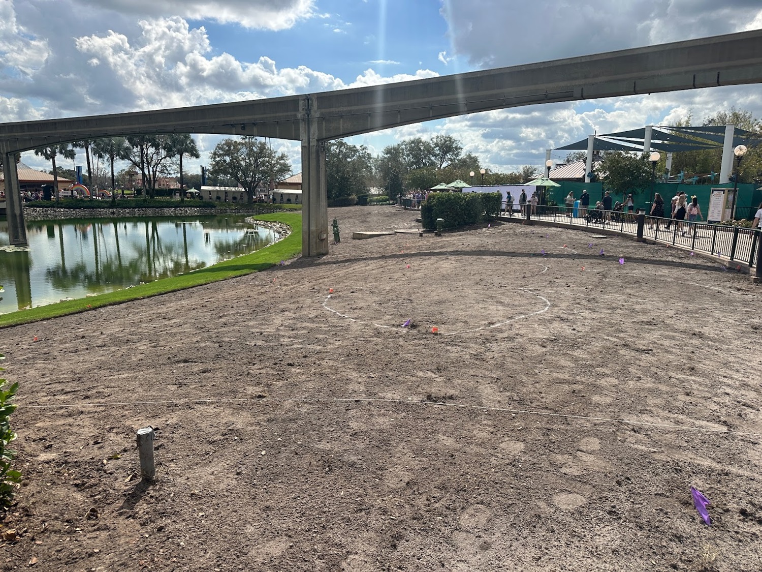 The grass has been removed along the pond between World Celebration and World Showcase. While it’s perhaps not the most pleasant sight currently, it will surely look even more beautiful during the festival.