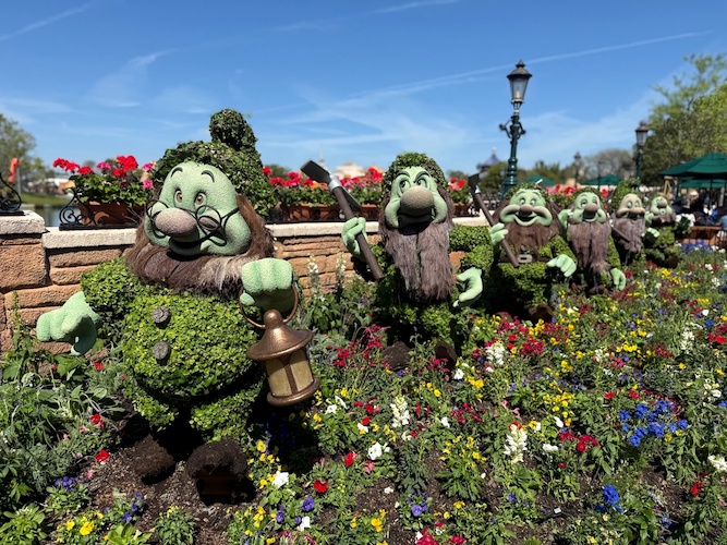 The 30th year of the EPCOT International Flower & Garden Festival kicks off next Wednesday, so let’s take one last look around the park to see what other topiaries and prep for the festival are already visible.