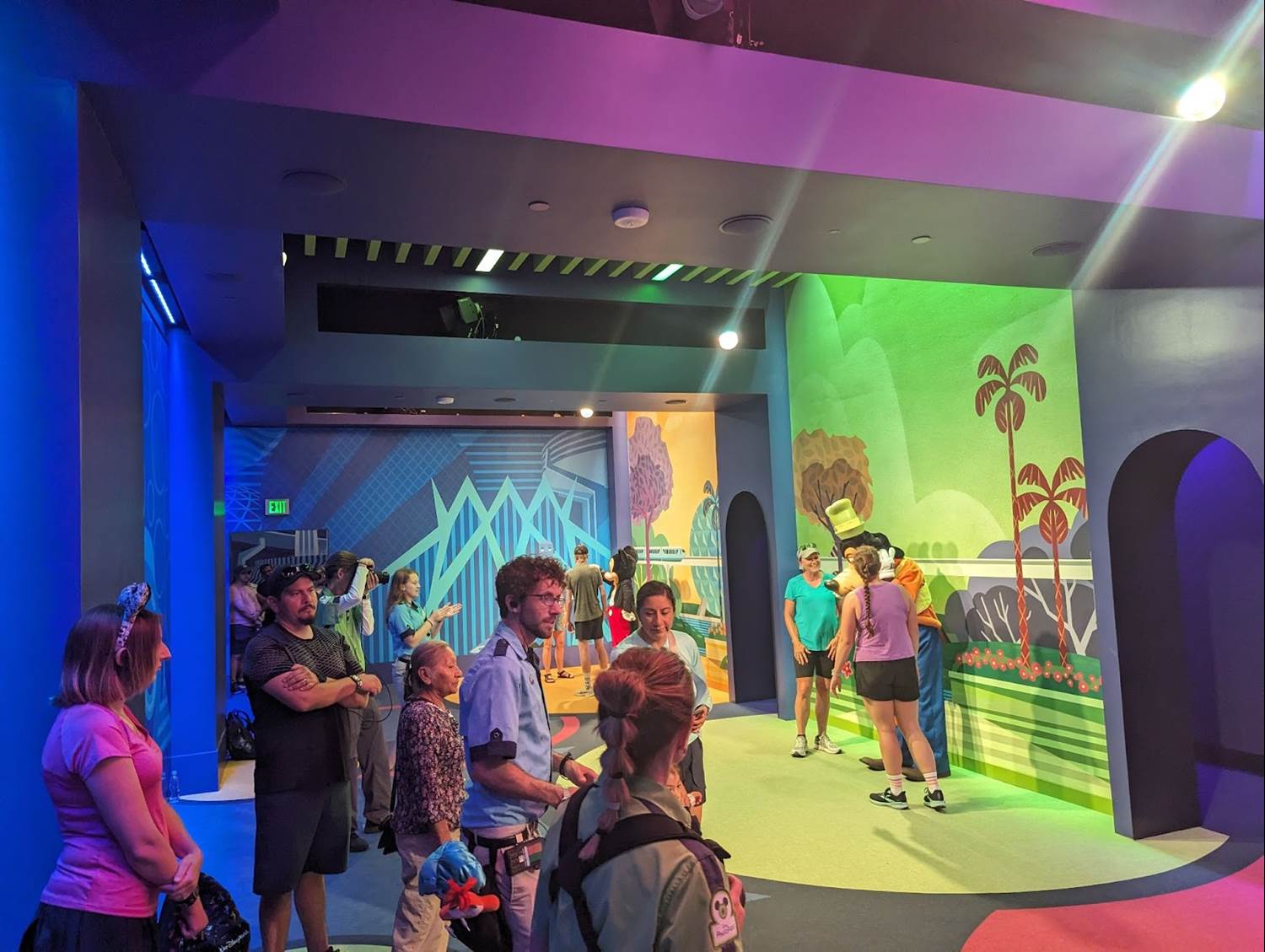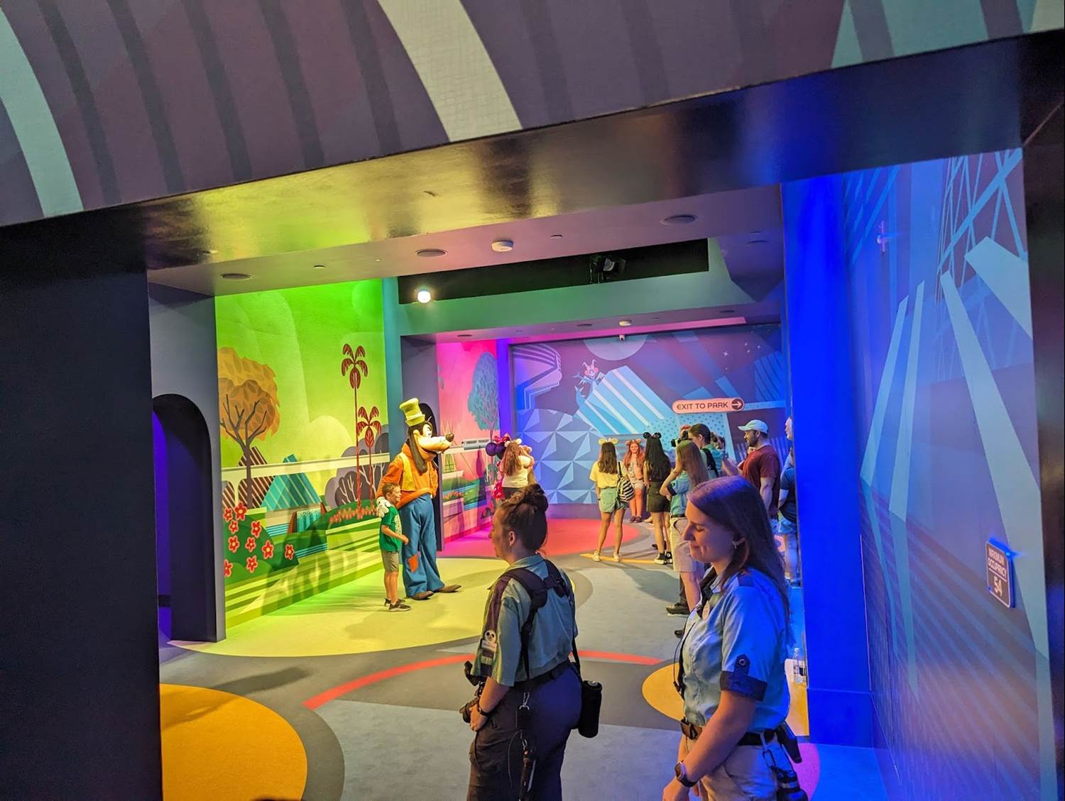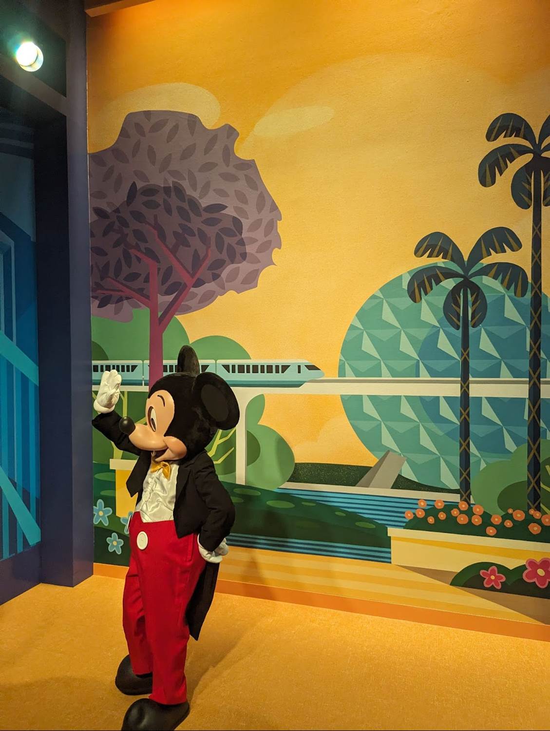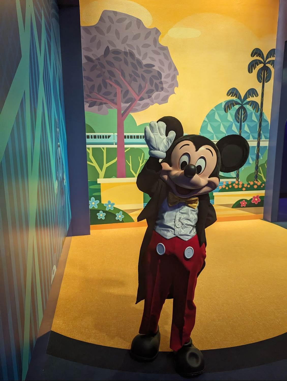 The new Mickey & Friends area is similar to that of the original EPCOT Character Spot located in Innoventions before the transformation of EPCOT began, with Mickey and friends available individually with their own themed backdrops. EPCOT fans will surely notice many of the references on the wallscape, including the robot butler from Horizons, the MET Technologies Body Probe from Body Wars in the former Wonders of Life pavilion, and even the dinosaurs of the Universe of Energy - all attractions and experiences that have since closed at the park.