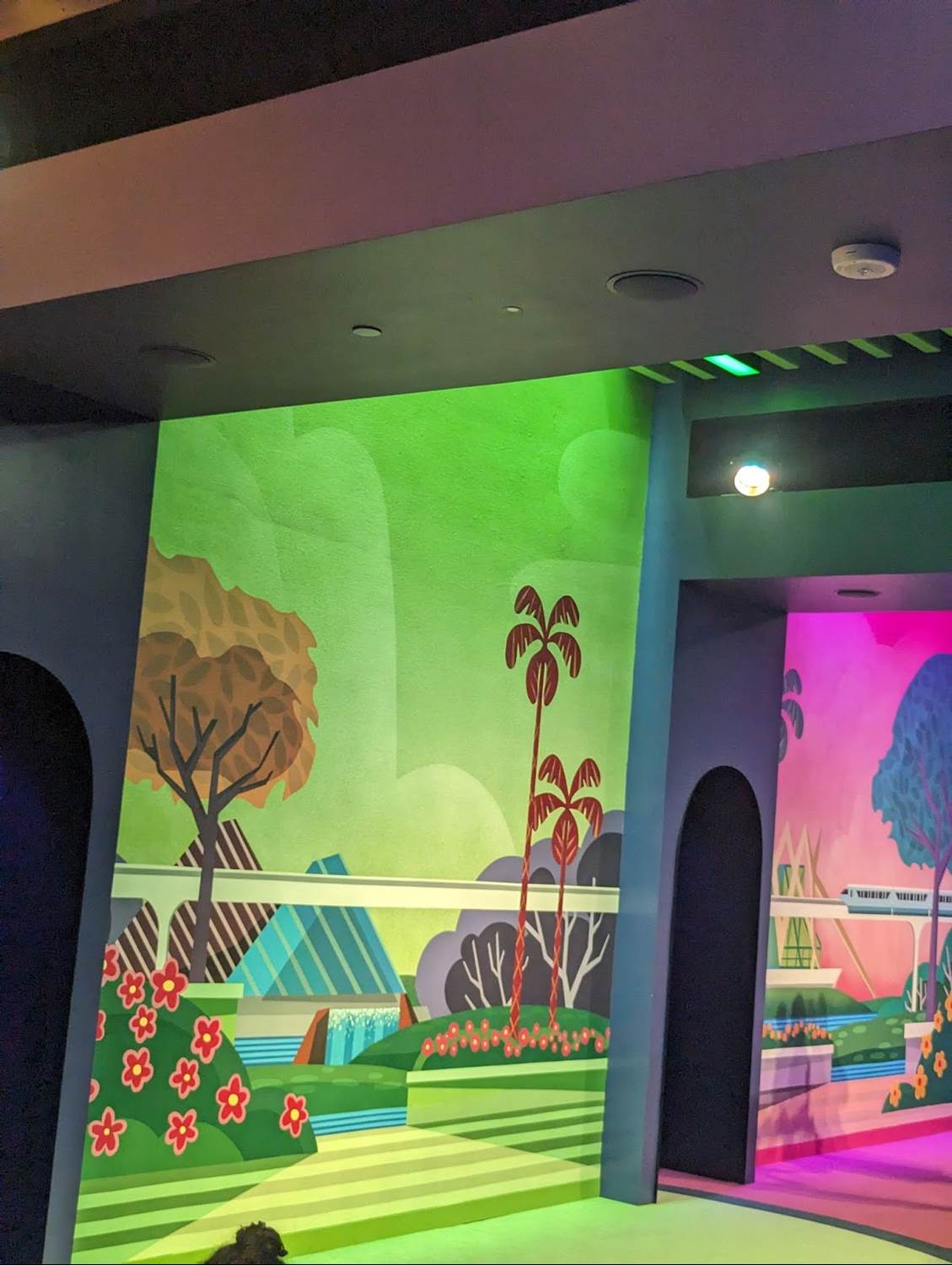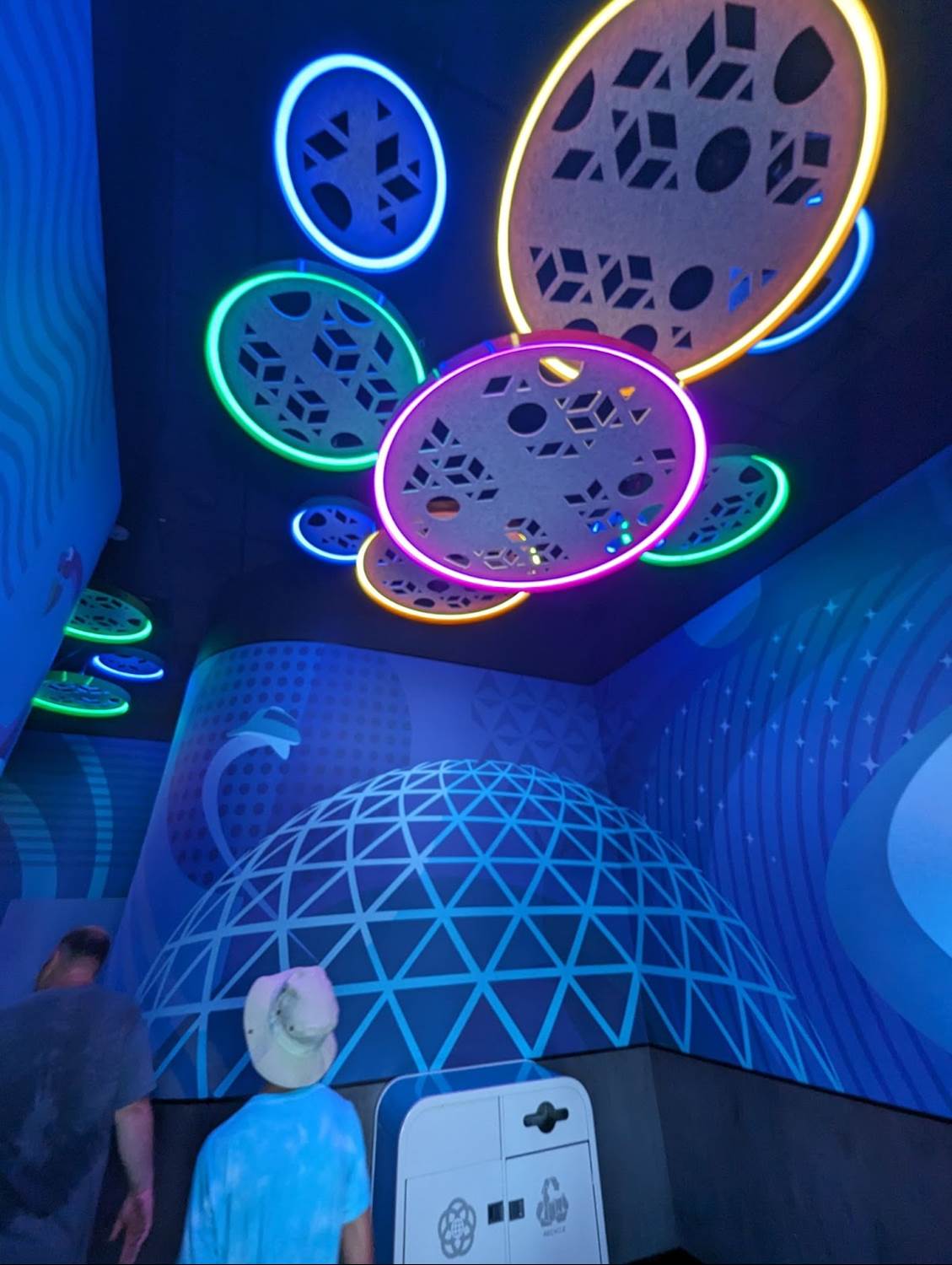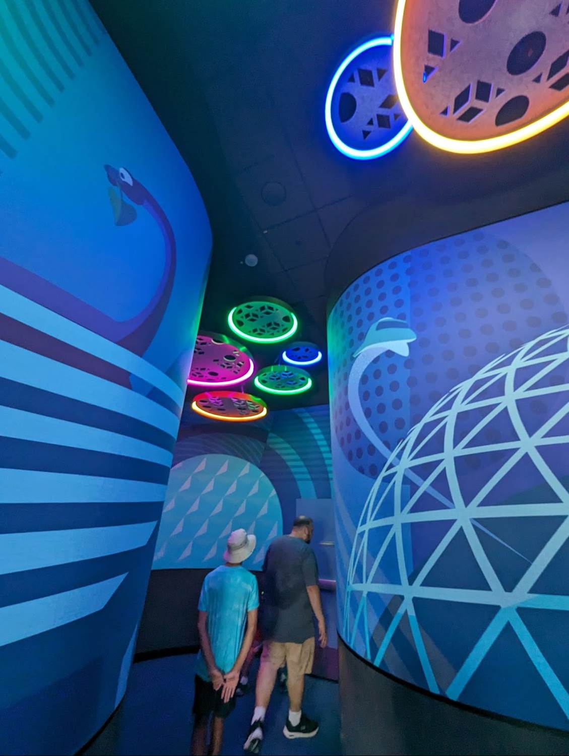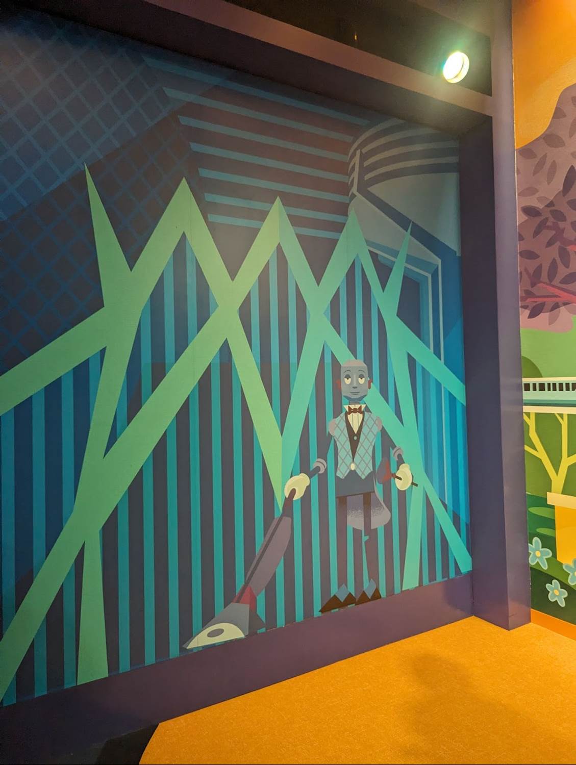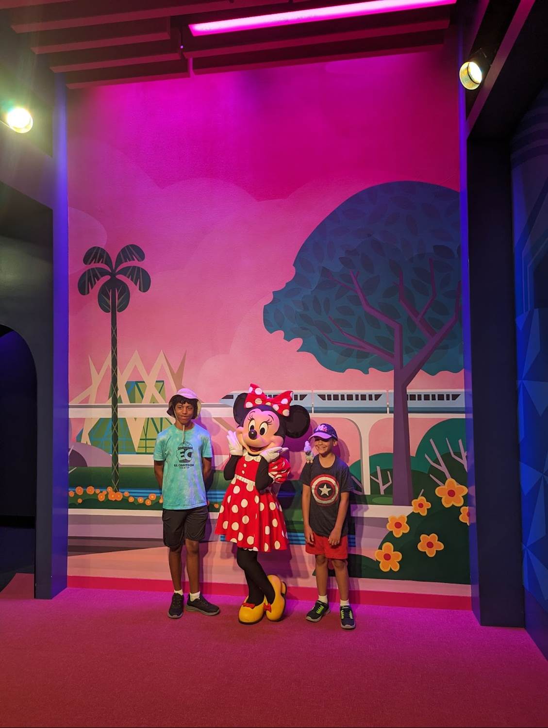 The new Mickey & Friends area is similar to that of the original EPCOT Character Spot located in Innoventions before the transformation of EPCOT began, with Mickey and friends available individually with their own themed backdrops. EPCOT fans will surely notice many of the references on the wallscape, including the robot butler from Horizons, the MET Technologies Body Probe from Body Wars in the former Wonders of Life pavilion, and even the dinosaurs of the Universe of Energy - all attractions and experiences that have since closed at the park.