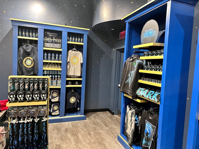 As with the other Epic Universe stores, including the big Preview Center at Universal Orlando Resort and the store at Universal Studios Hollywood, the different merch is broken up into sections based around the lands that will be in the park.
