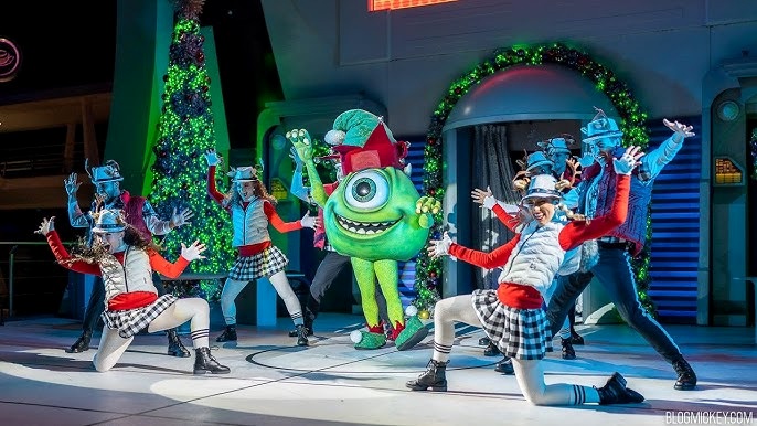 Mike Wasowski was our next guest, coming out to sing “Rudolph the Red-Nosed Reindeer" while also adding in a bit of stand up and other funny jokes. One doesn’t often get little touches like that in a theme park show, particularly a holiday exclusive, so it was important to take advantage when it came along.