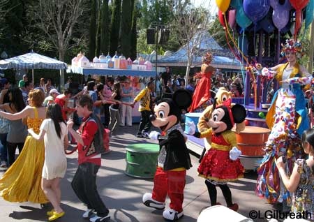 By the time of the celebration, Disney was looking to replace Walt Disney’s Parade of Dreams, which had called the park home since the 50th anniversary. Starting March 27, 2009, Celebrate! A Street Party started to call Disneyland home, but watching it wasn’t as simple as lining up anywhere on the parade route. No, one needed to head to one of the Celebration Zones where the show would stop and the party could begin.