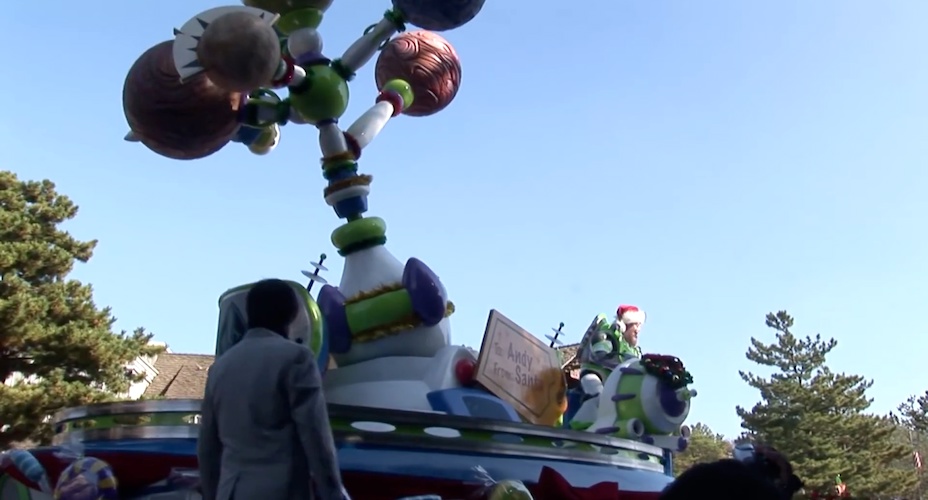 Some clowns killed time before the next float, a Toy Factory reminiscent of Santa’s workshop where Goofy was in charge (for better or for worse). Luckily, he had Mike and Sulley around to help him in a unique juxtaposition to say the least. But the next year, the main man Santa himself was moved to this earlier part of the parade to help keep the Goof in order.