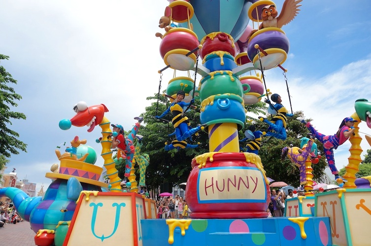 Before the full float that came next, there was a bit of a tease with Pooh in a little hunny pot followed by dancers in Tigger outfits that were super cute. With him were Tigger and Eeyore just strolling around before a full-sized float that had a lot of zany energy to it. There were a bunch of Heffalumps plus some bouncing “bees" (aka people on elastic bands that allowed them to bounce).