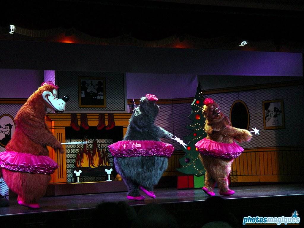 After all the fun dancing around, Mickey and Minnie were tired so they went to sleep on a couch that happened to be sitting around on stage and with their sleeping, it was time for the fairies to come out and spread their magic around the abode. But these were no ordinary fairies, as they were a bit hairier than your normal fairy, primarily because they were bears.
