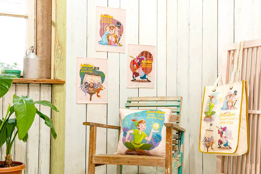 As for Peter’s friend Tinker Bell, guests can pick up an adorable plush charm, a t-shirt with wings on the back that glow in the dark, a shoulder bag, and Tinker Bell approved stationery that will make them feel as if they’ve transported straight to Pixie Hollow.