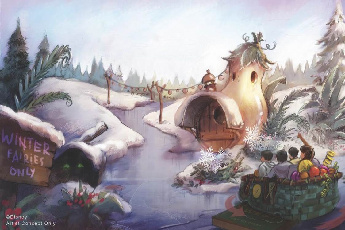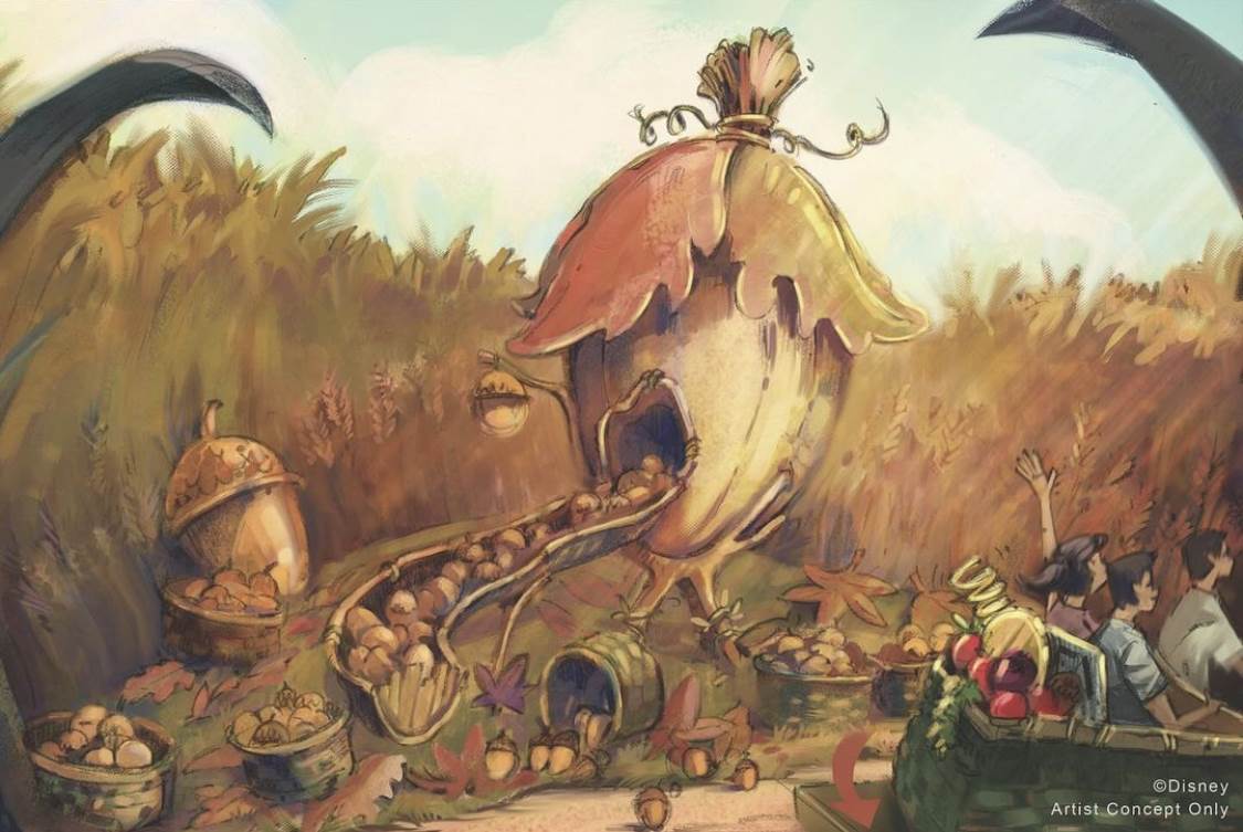 - Upon entering the attraction, everything – from flowers and mushrooms to painting utensils and pieces of nibbled cheese – will appear bigger in size, leading guests to realize that they have shrunk down to the size of a fairy and entered their world. The attraction’s boarding area is a delivery service location where guests board a Busy Buggy and help Tinker Bell deliver items throughout the fairy valley.