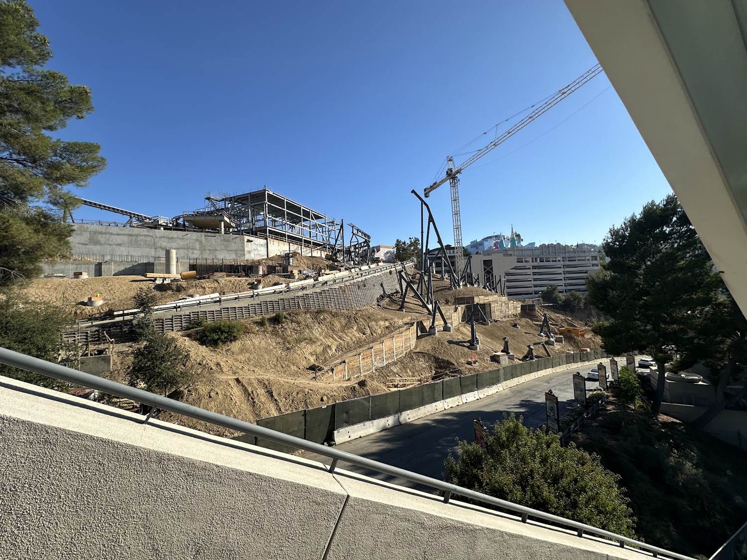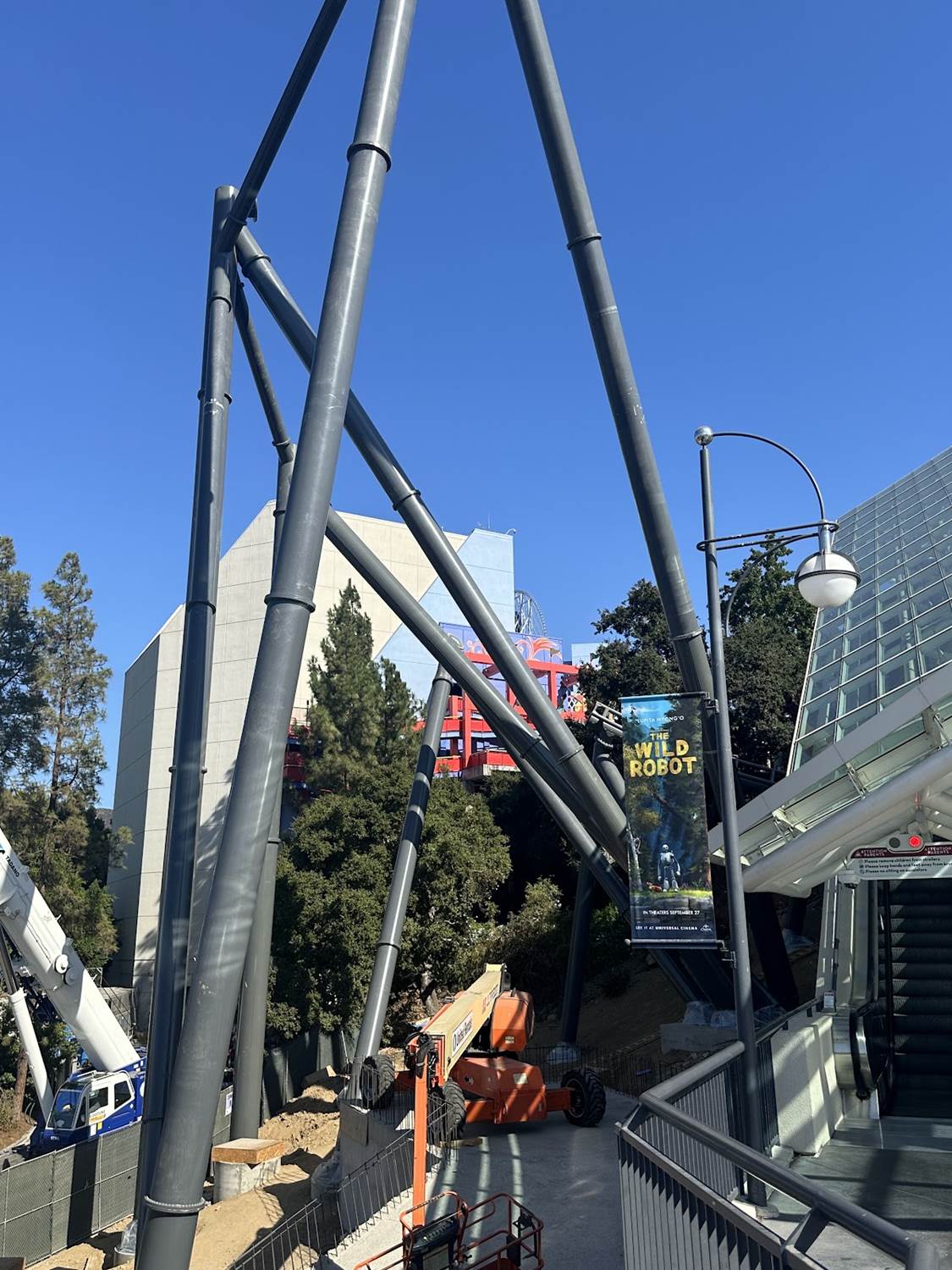 Fast & Furious: Hollywood Drift will be located on the Upper Lot of Universal Studios Hollywood, and you can see progress near the entrance of the landmark Starway - the massive escalator complex that takes guests between the upper lot and lower lot of the studio theme park.