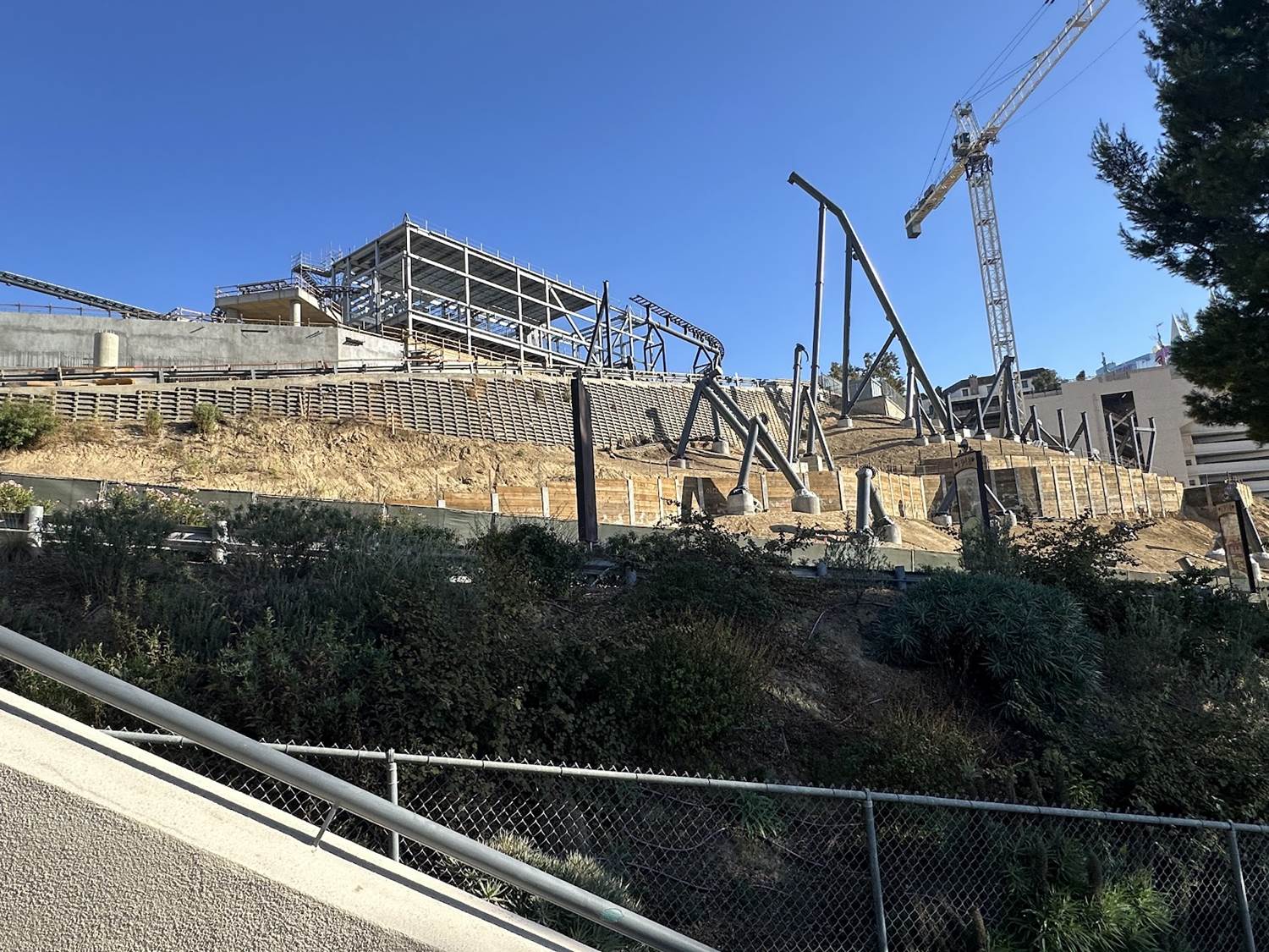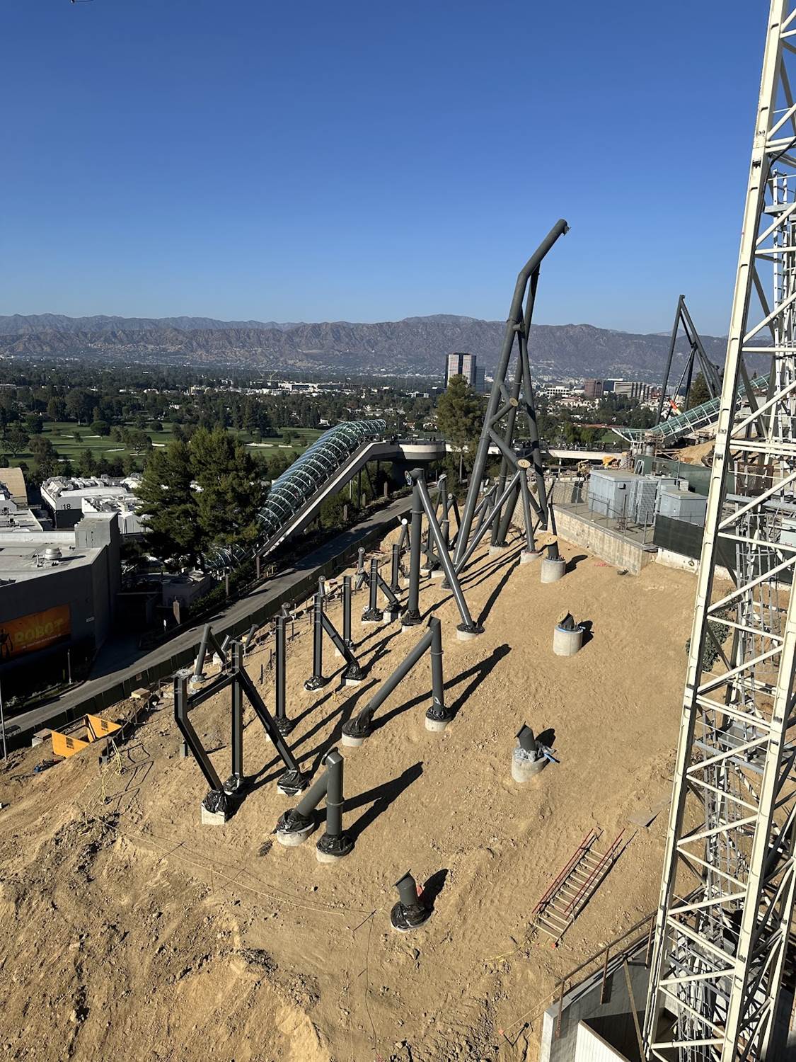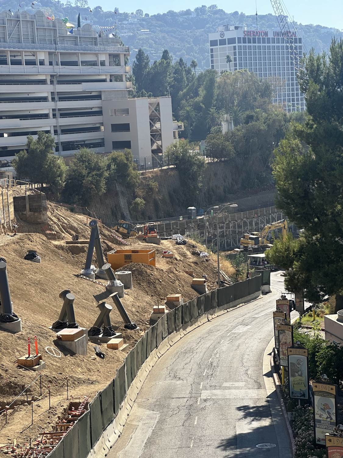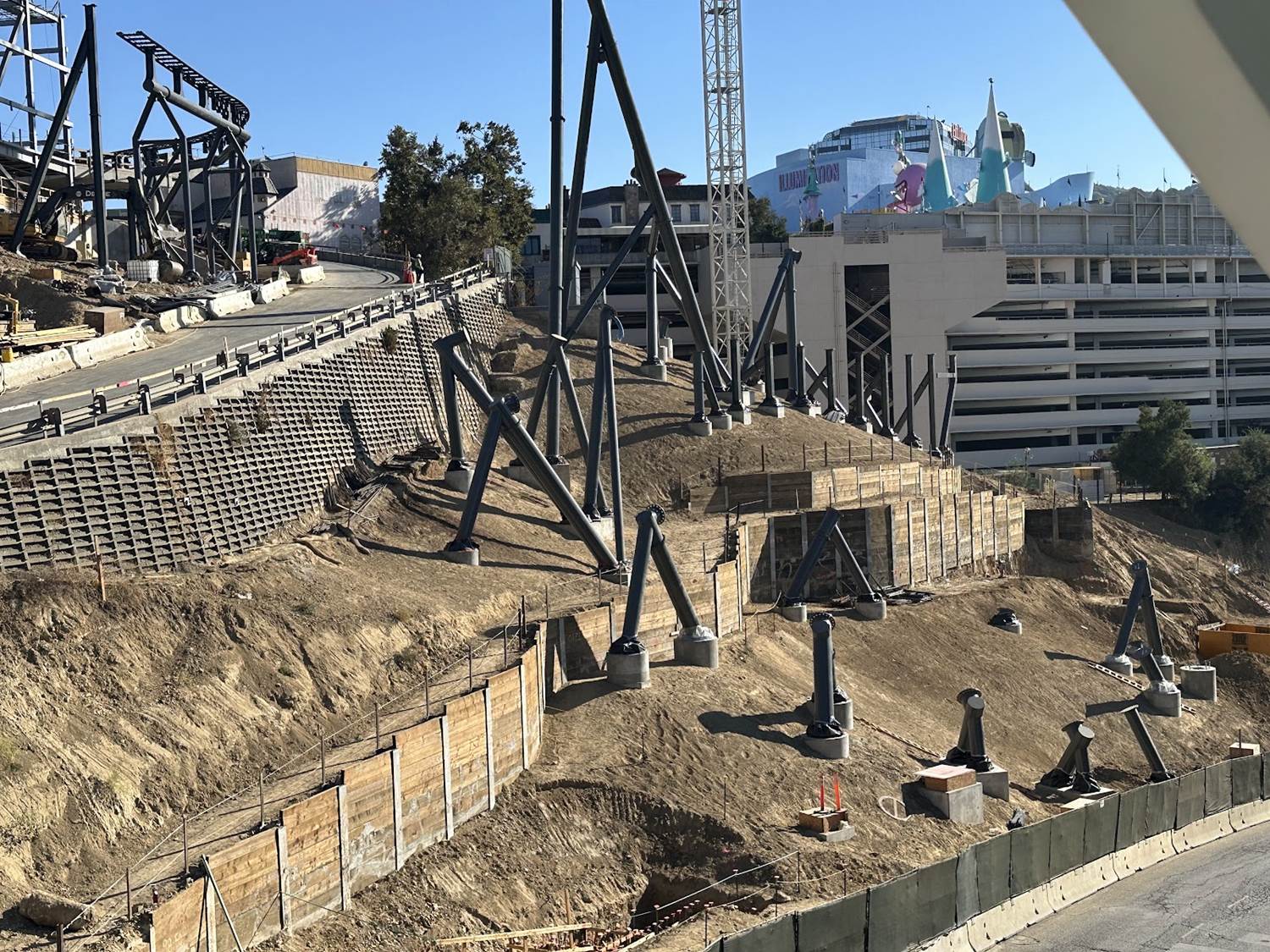 You can also see the scale of the attraction taking shape as the hillside, once home to a landmark sign that read “Universal City," is now populated with footers and support structures going vertical with the aforementioned station building on the hillside.